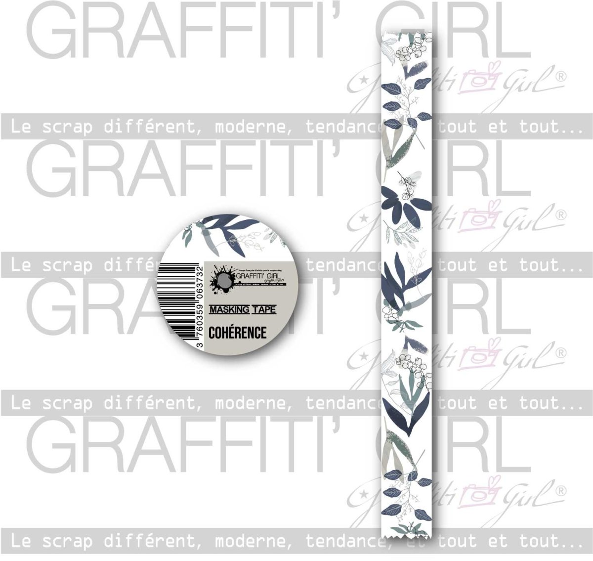 Nom: Cohérence Produit: Masking tape Taille: 1,5cm de large et 10m de long Marque: Graffiti Girl Collection: Cohérence Utilisation: A déchirer, découper, coller, repositionner. Masking tape pour loisirs créatifs.
