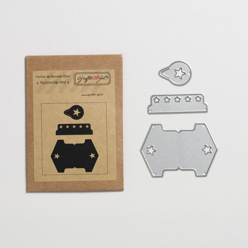 La matrice de découpe scrapbooking Accroche-moi de chez Graffiti Girl appartient à la collection Girly. La pochette contient trois dies qui sont sous forme d’onglets ou d’attaches pour vos photos sur votre page de scrap par exemple. Le motif étoile est présent sur le dies et le tout vous permettra d’ajouter une note clean à vos créations de scrapbooking. Grâce à Accroche-moi, découpez votre papier de scrap à la forme des dies, et faîtes ensuite usage des découpes comme bon vous semble !
