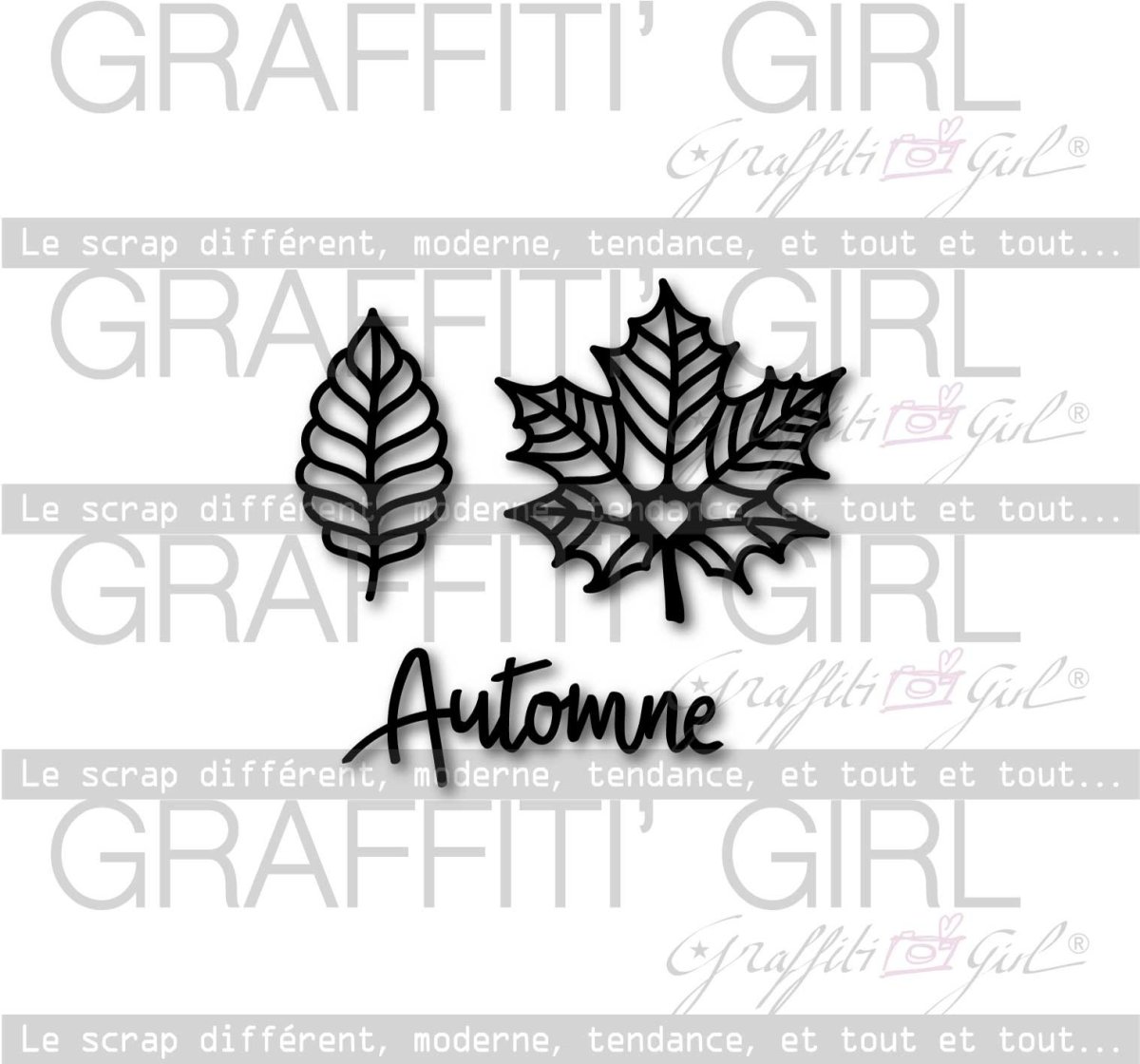 Un jolie pack de matrices de découpe pour machine telle que Big-shot. Feuilles d’automnes ainsi que le mot Automne en français, pour mettre sur vos projets de scrapbooking