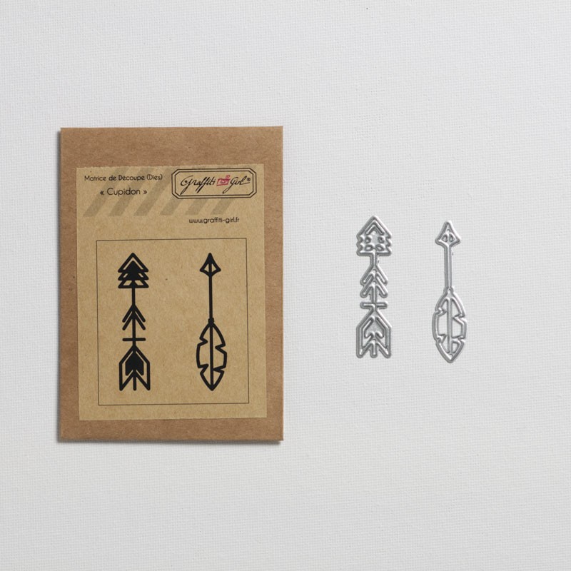 Ces matrices de découpe Cupidon de chez Graffiti Girl appartiennent à la collection Cocon. Toujours dans un style clean, les matrices Flèches , un brin graphique, un brin Aztèque, sont à placer partout sur vos projets, elles sont fines et s’adapteront à tout style de Scrap. Grâce à Cupidon, découpez votre papier de scrap à la forme du dies, et faîtes ensuite usage de la découpe comme bon vous semble !