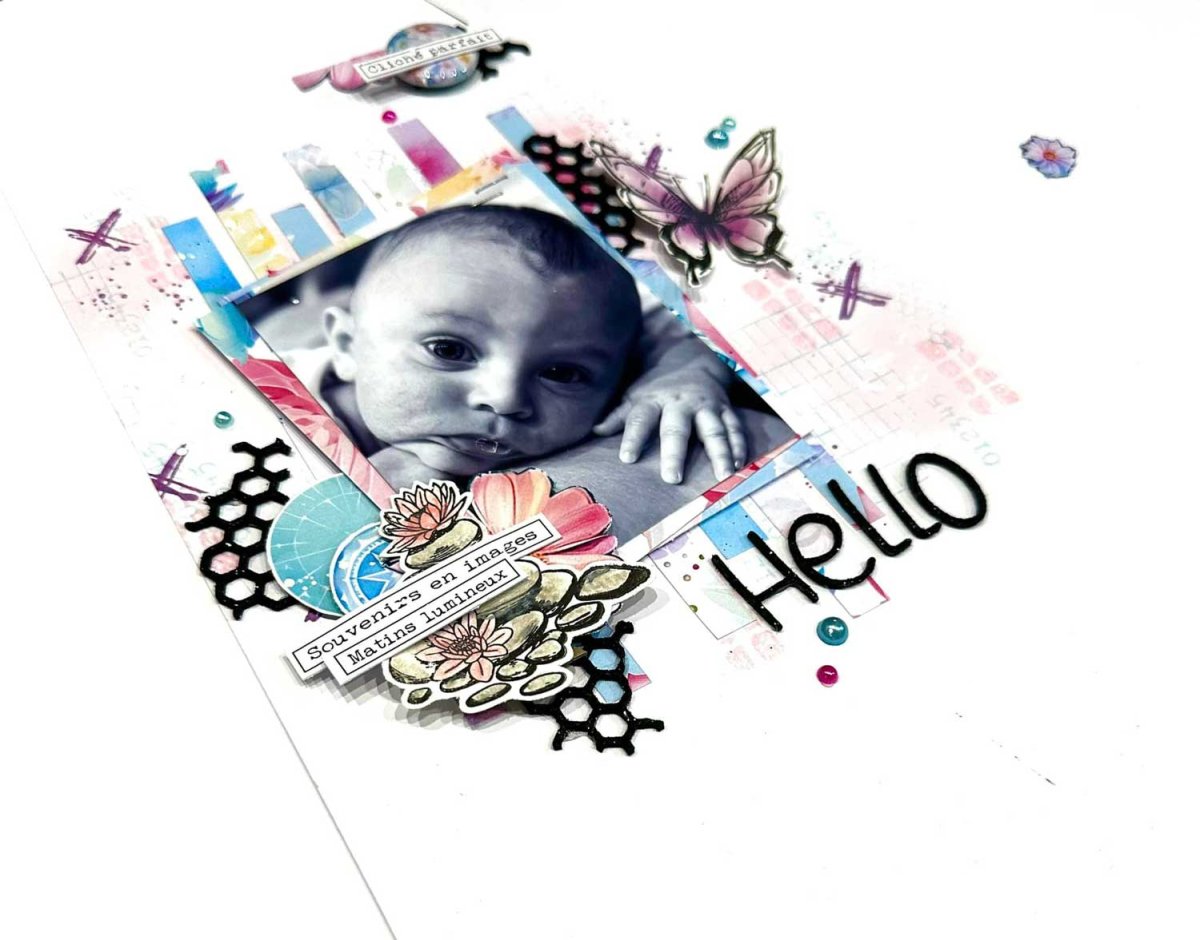 Idée d’Utilisation : Découpez le mot « hello » dans un papier coloré et utilisez le contour dans un autre matériau pour créer un effet 3D sur une carte de voeux. Ou bien utilisez le mot découpé comme élément central d’une page de scrapbooking pour accueillir un nouveau chapitre ou célébrer une amitié.