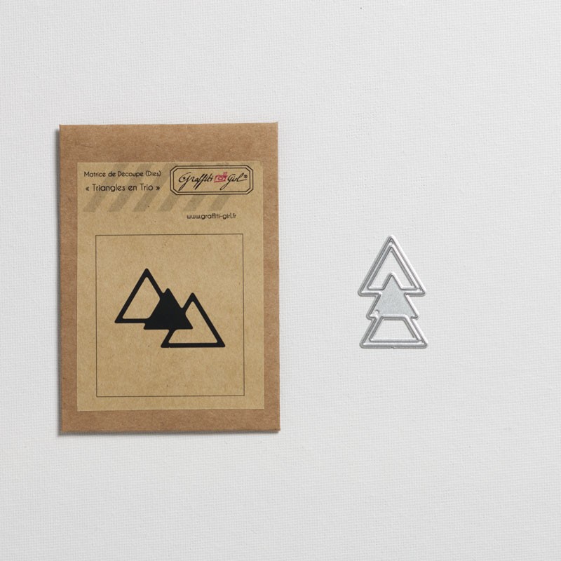 Cette matrice de découpe Triangles en Trio de chez Graffiti Girl appartient bien à sa collection Géomavie. En effet, ce dies est un triple triangles qui vous permettra d’ajouter une touche géométrique à vos créations de scrapbooking. Grâce au Triangles en Trio, découpez votre papier de scrap à la forme du dies, et faîtes ensuite usage de la découpe comme bon vous semble !