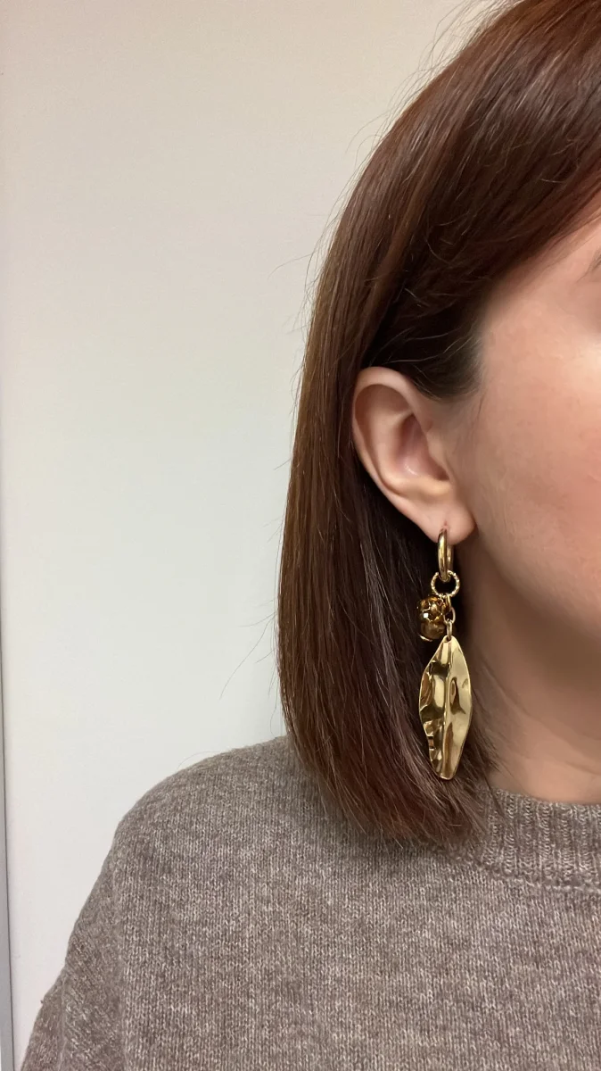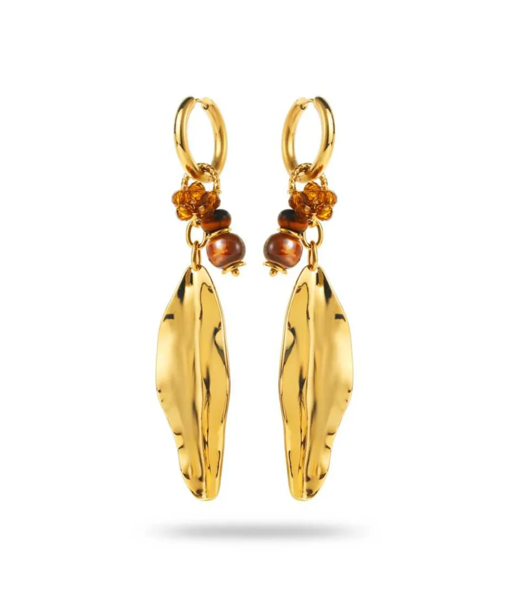 Avec leurs longues feuilles dorées et leurs perles ambrées, les créoles Océane nous plongent dans une balade en forêt aux couleurs chaudes. Ces boucles d’oreilles pendantes associent élégance et caractère, tout en apportant de la structure au visage. Idéales avec une coiffure relevée ou un carré flou, elles apportent une touche naturelle et précieuse à toutes vos tenues de saison.