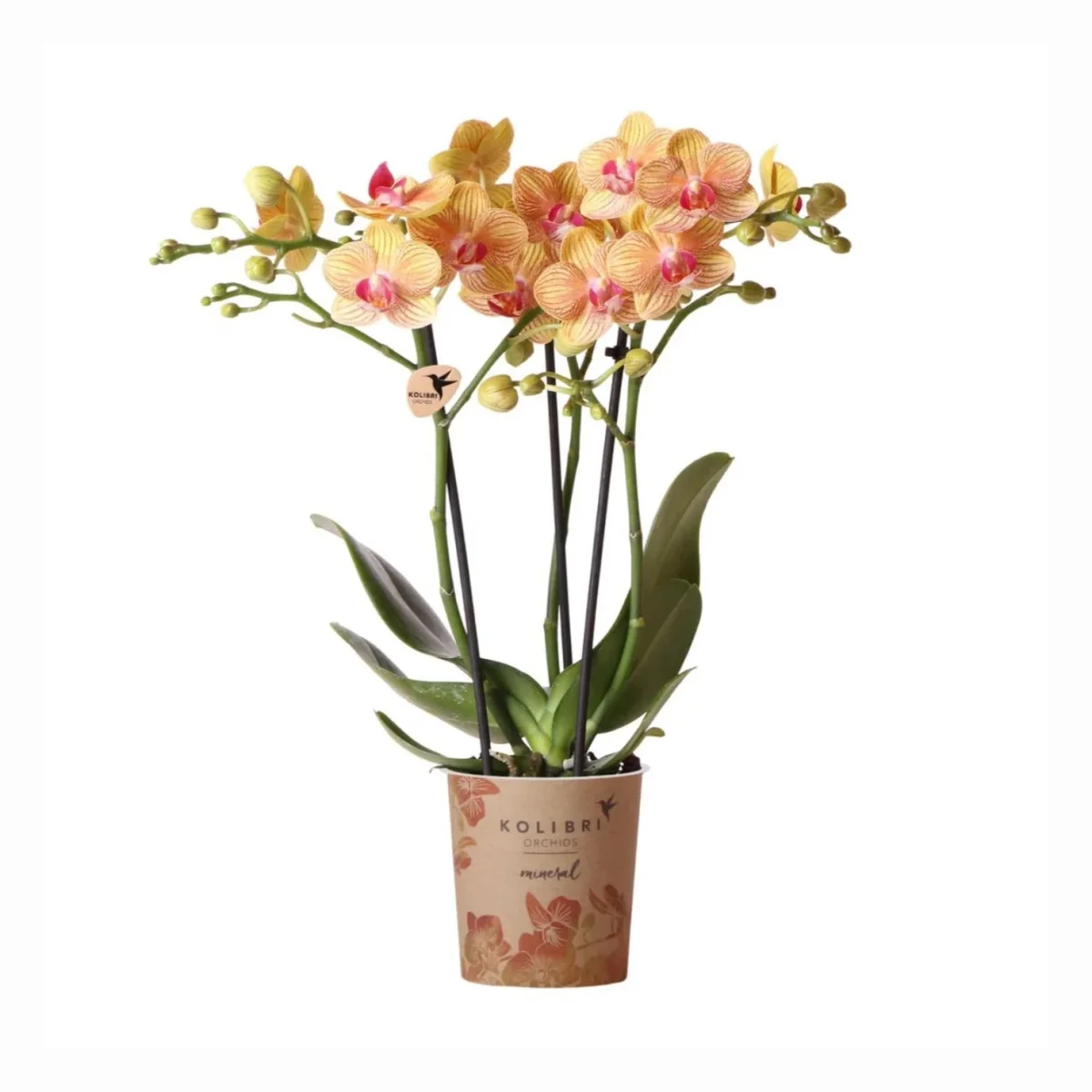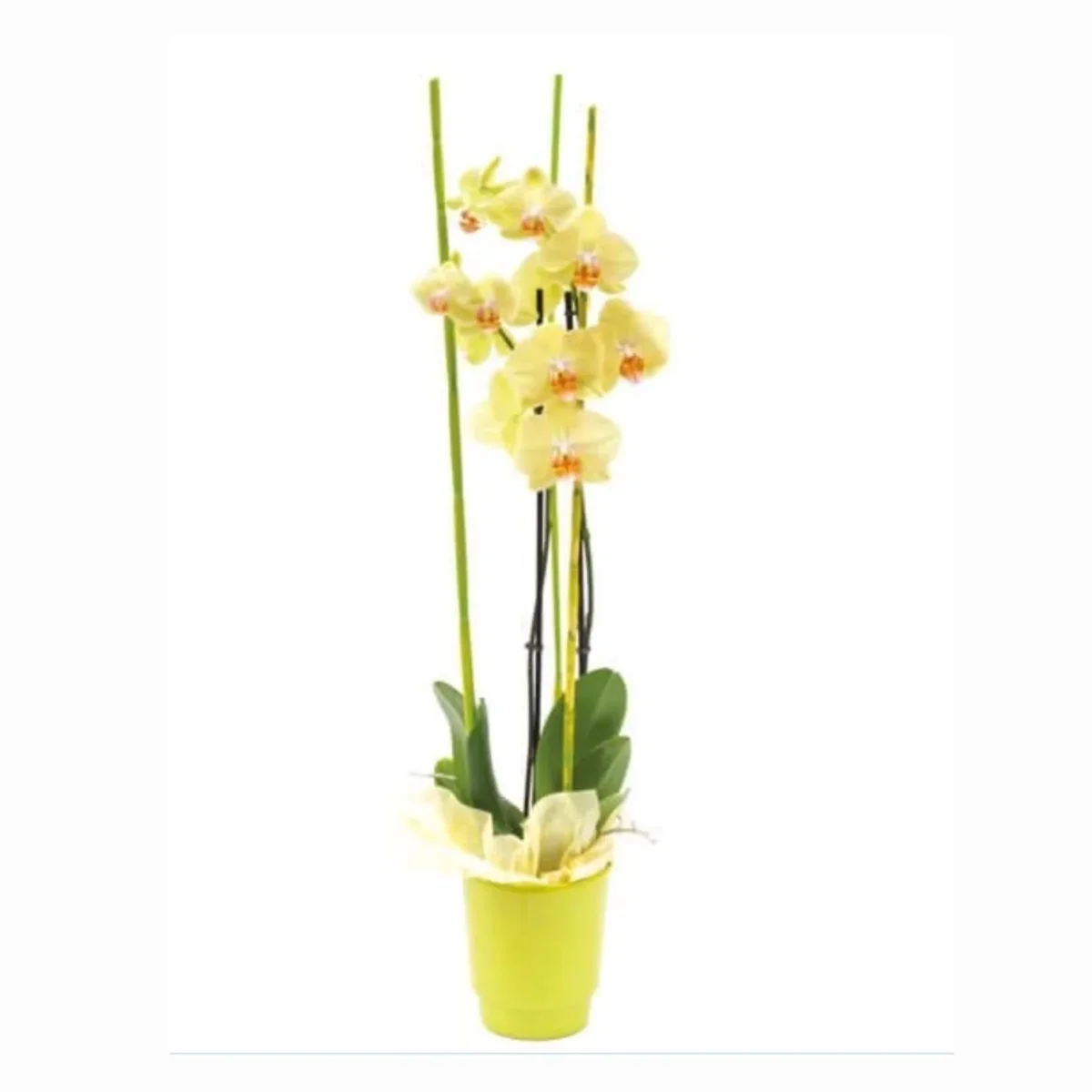 Une Orchidée 2 branches, couleurs au choix, dans son pot. Contenant en fonction des disponibilités de l’atelier.