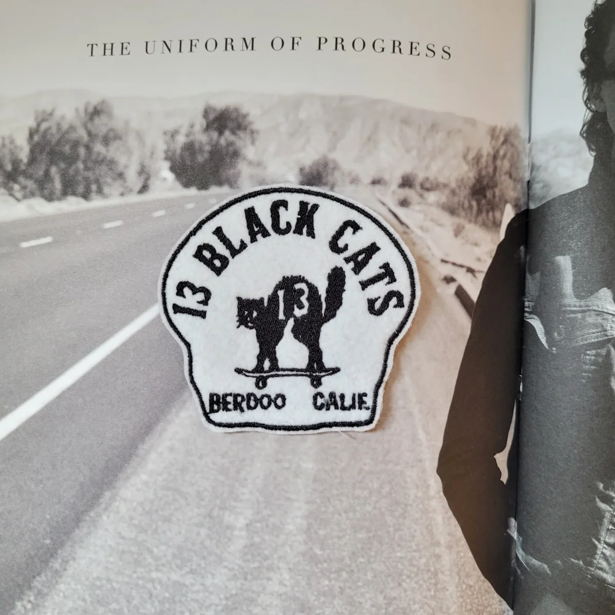 Limited embroidered patch « 13 Black Cats on felt and old coton canvas. Size « 3,5 » × 3