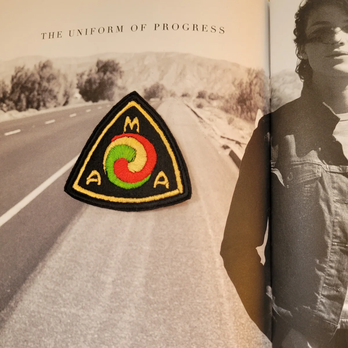 Limited embroidered patch « AMA » on felt and old coton canvas. 3,5″×3″