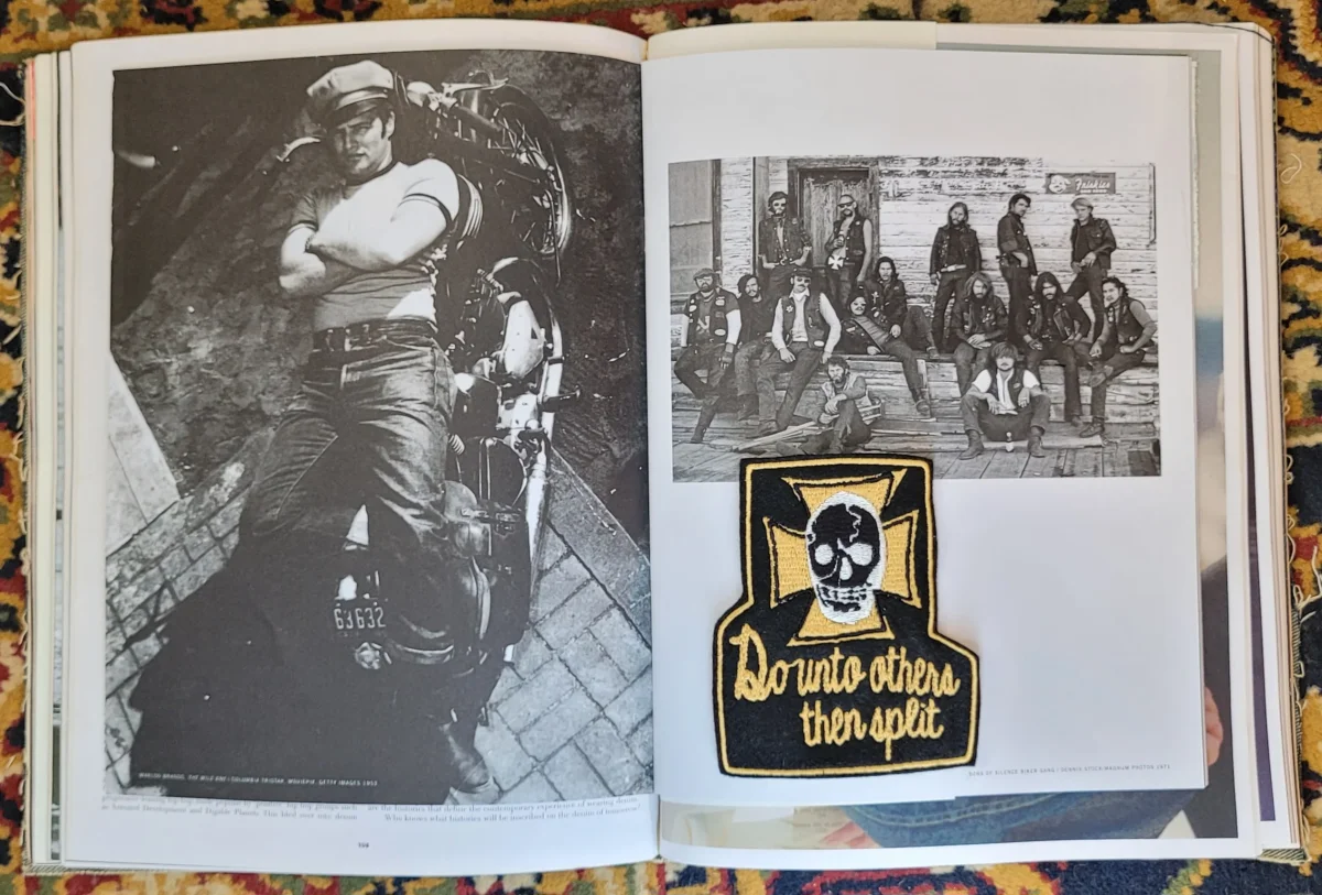 Écusson brodé en édition limitée « Do unto others then split », un classique des bikers californiens des années 60, réalisé sur feutre et toile de coton ancienne. Dimensions : 10 x 10 cm. Mon objectif est de perpétuer la tradition des écussons brodés à l’ancienne, avec des matériaux et des défauts qui en font des pièces uniques au fil du temps. Vous ne les trouverez donc nulle part ailleurs, sauf ici, car ces modèles ne sont pas vendus en ligne. Je peux réaliser vos écussons sur mesure à partir d’une photo haute résolution. N’hésitez pas à me contacter..