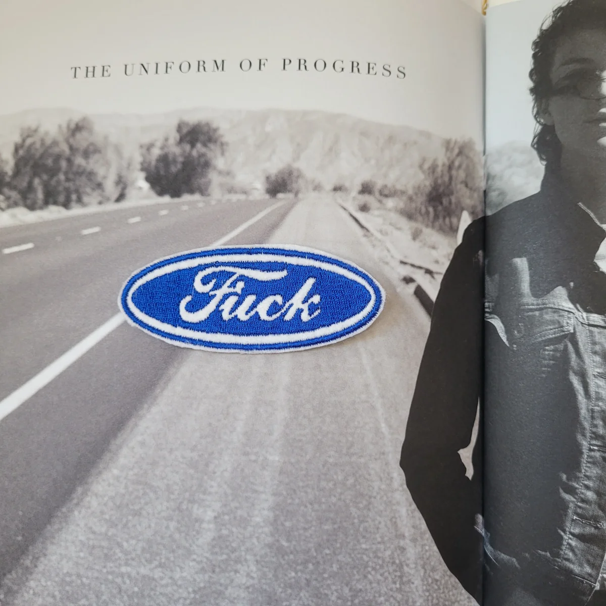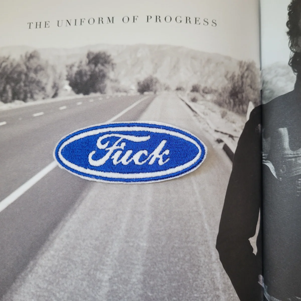 Limited embroidered patch « FUCK » on felt and old coton canvas. Size 4″×1,5″