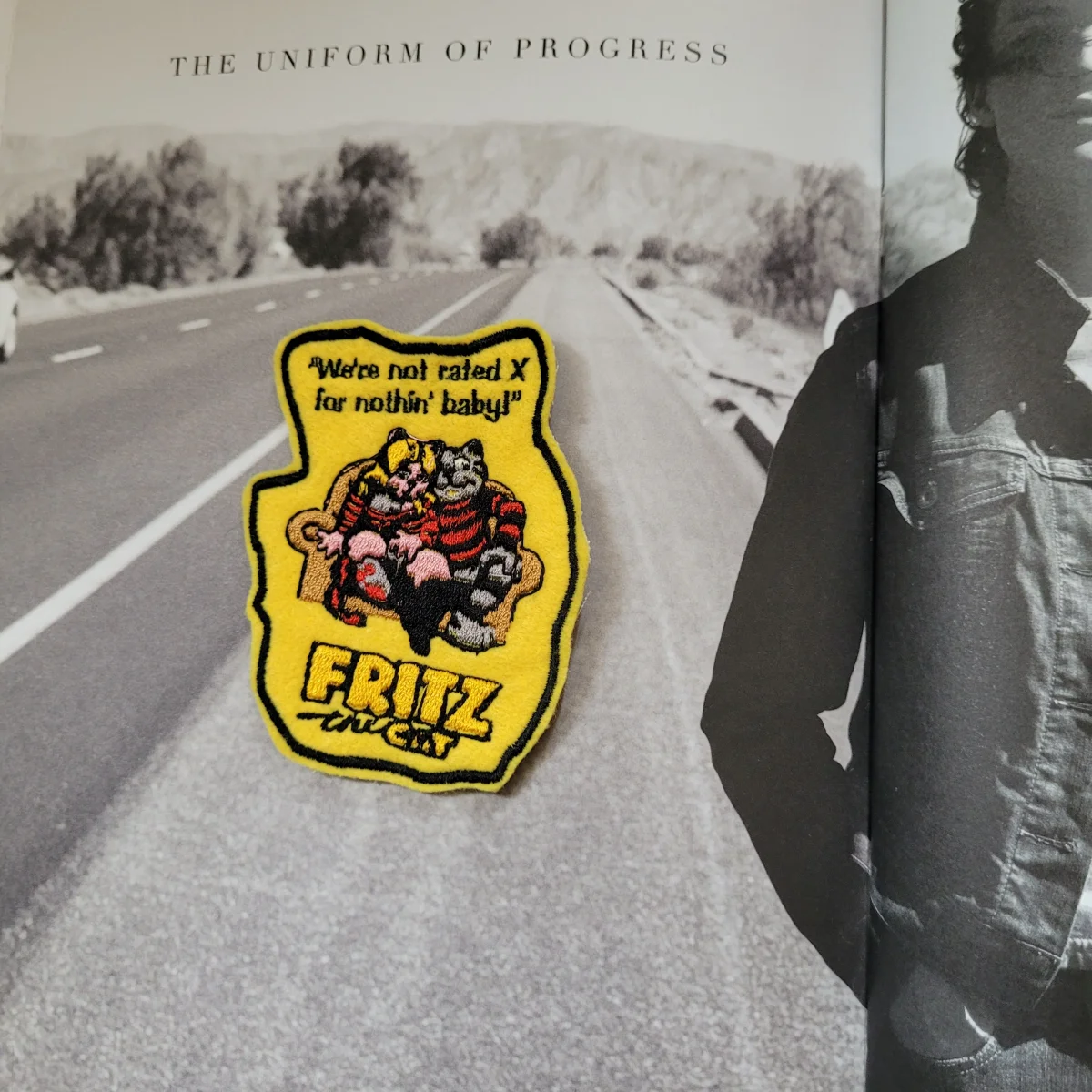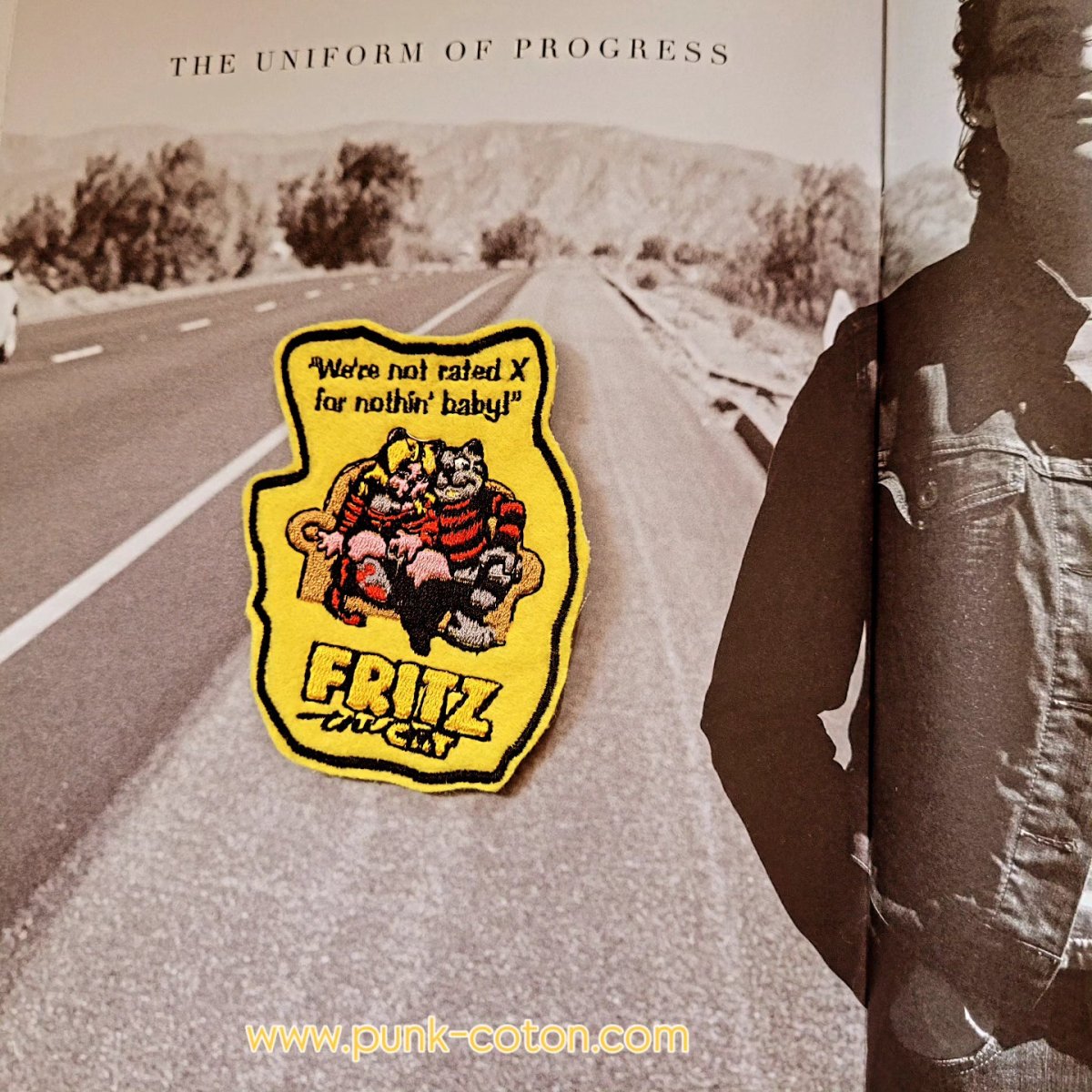 Patch brodé en série limitée « Fritz the cat » sur feutrine doublée de vieux tissus cotons. Sa taille est de 11 cm× 10cm