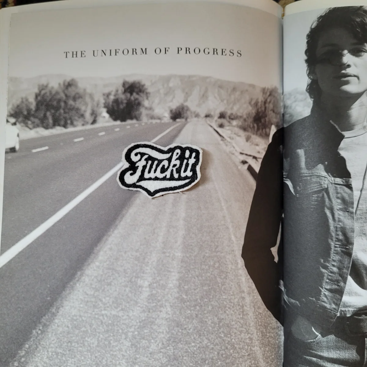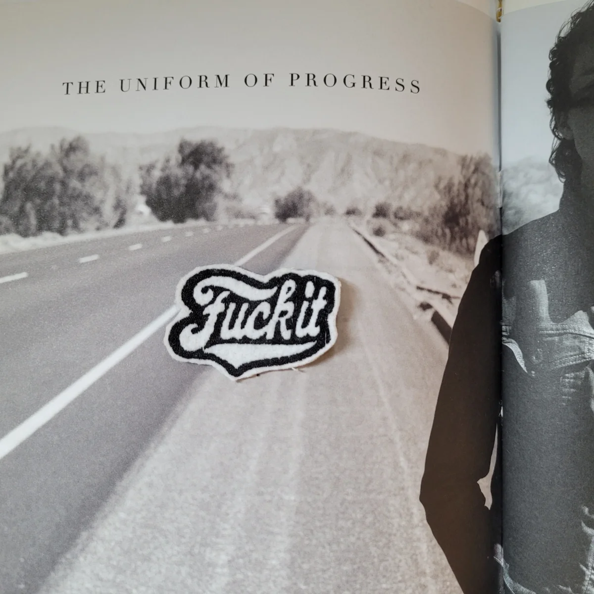 Écusson brodé « FUCK IT » en édition limitée sur feutre et toile de coton vieilli.