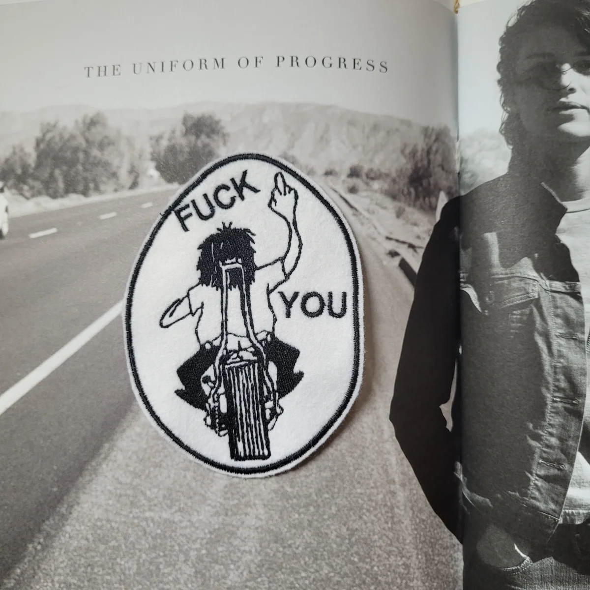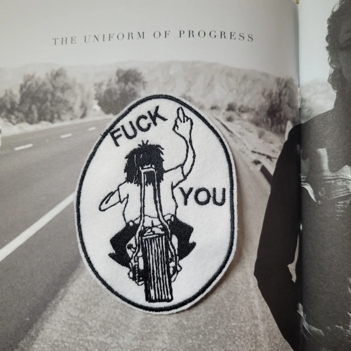Limited embroidered patch « Fuck you » on felt and old coton canvas. 5 »x 3,5 »