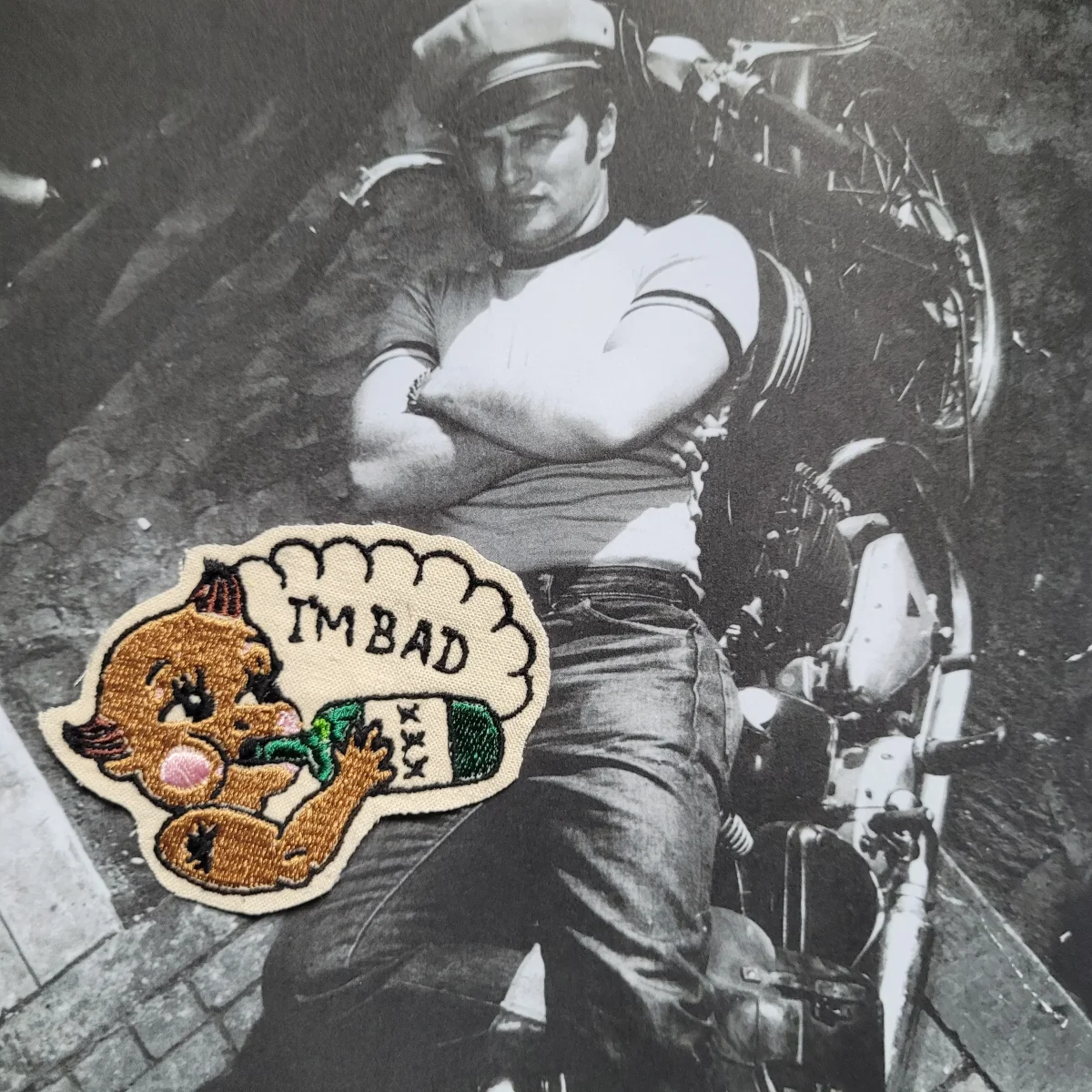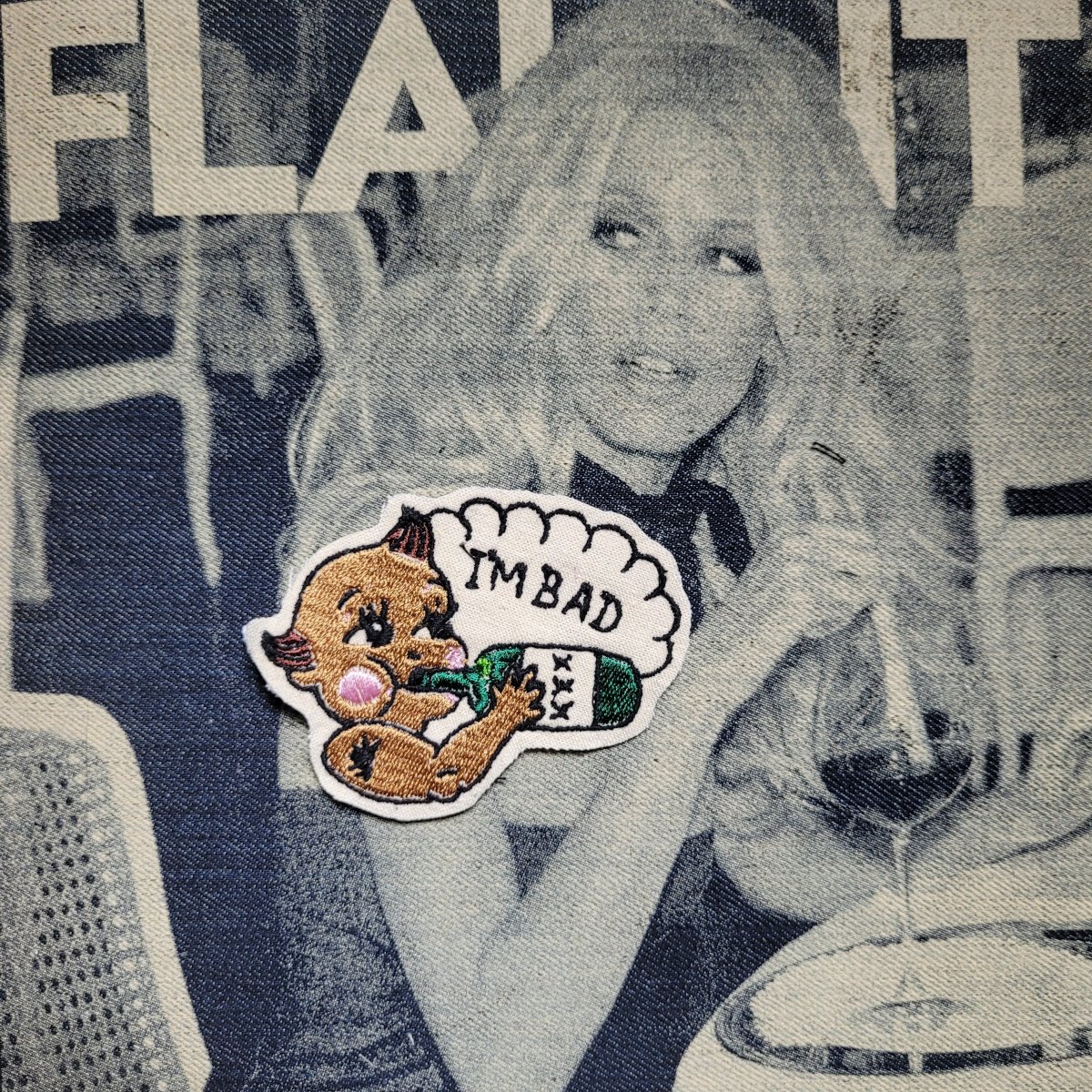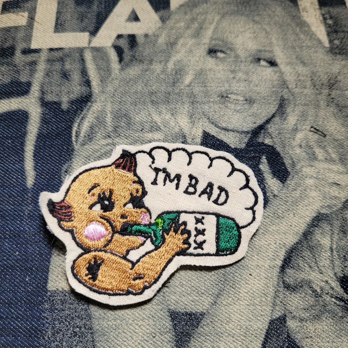Patch Brodé « I’m Bad Baby » My Boy Punk and Coton SUR VIEUX TISSU COTON