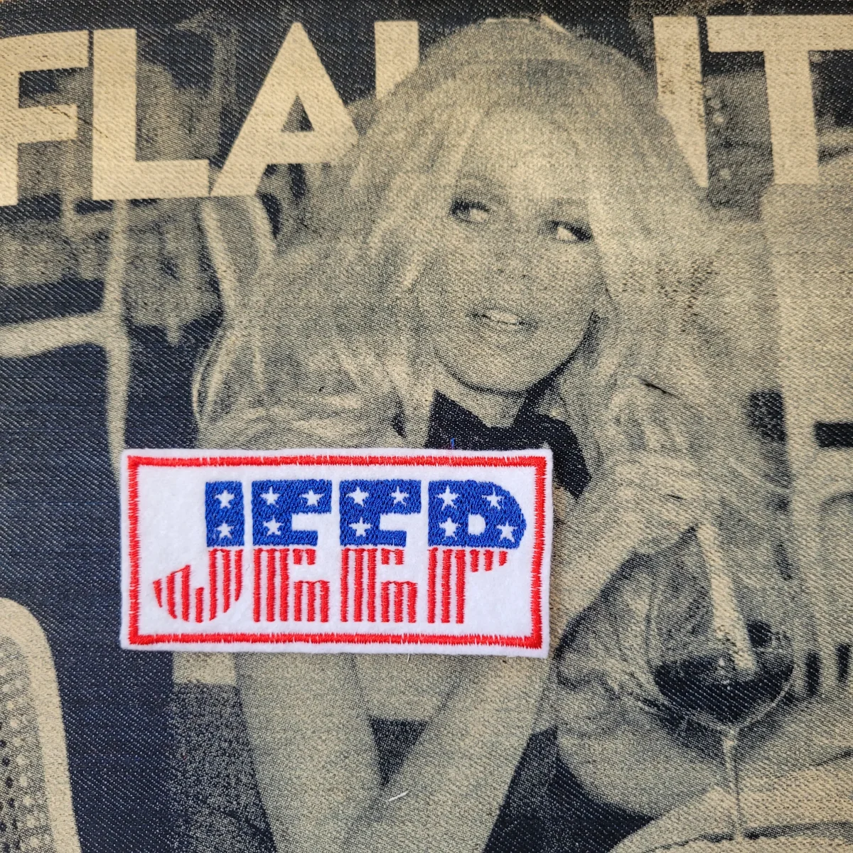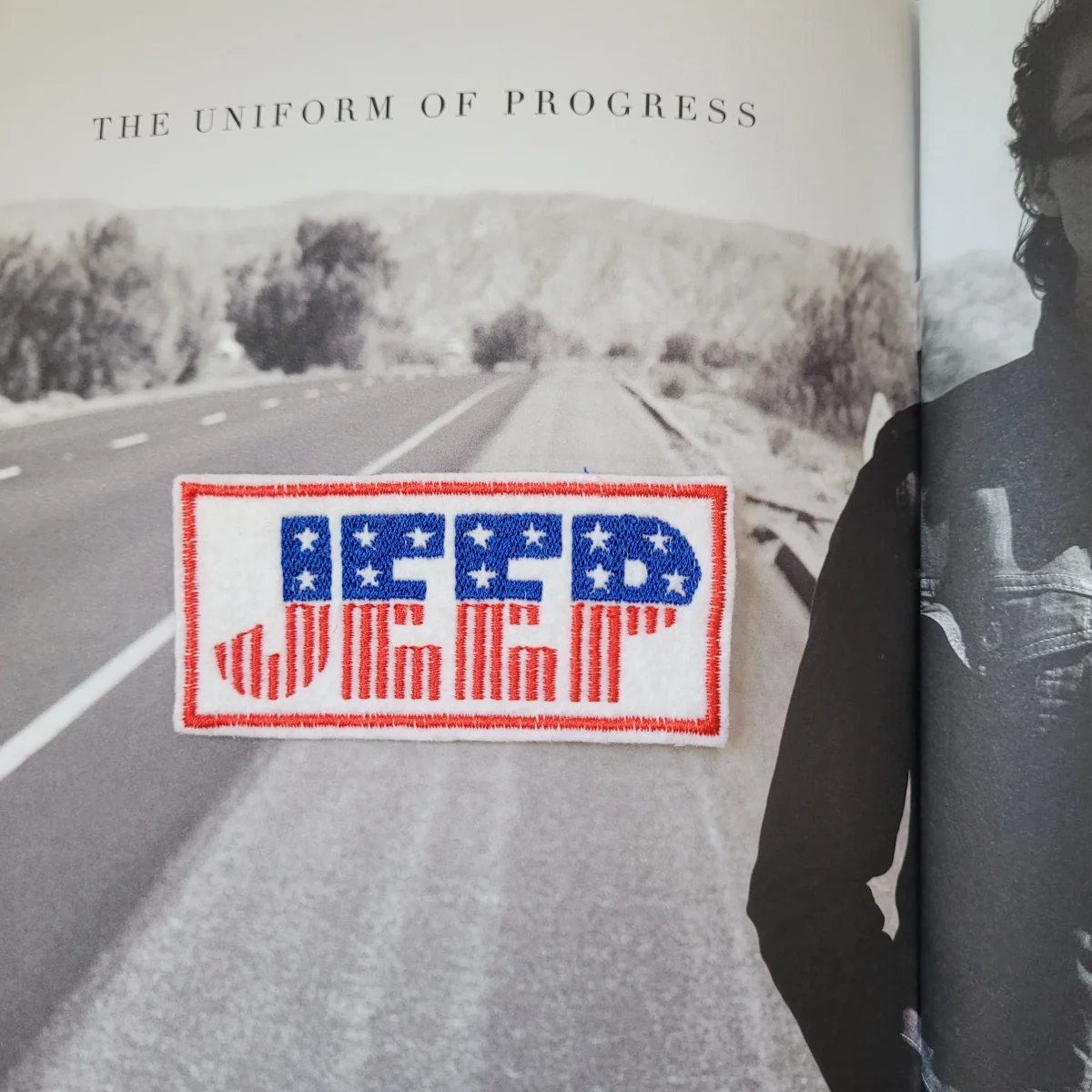 Limited embroidered patch « Jeep » on felt and old coton canvas. Size 3,5 « × 1,5 «