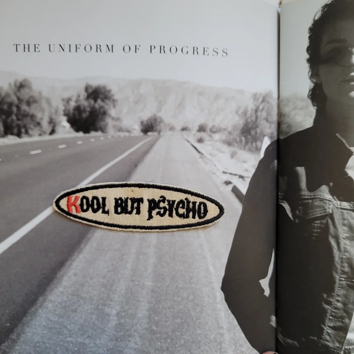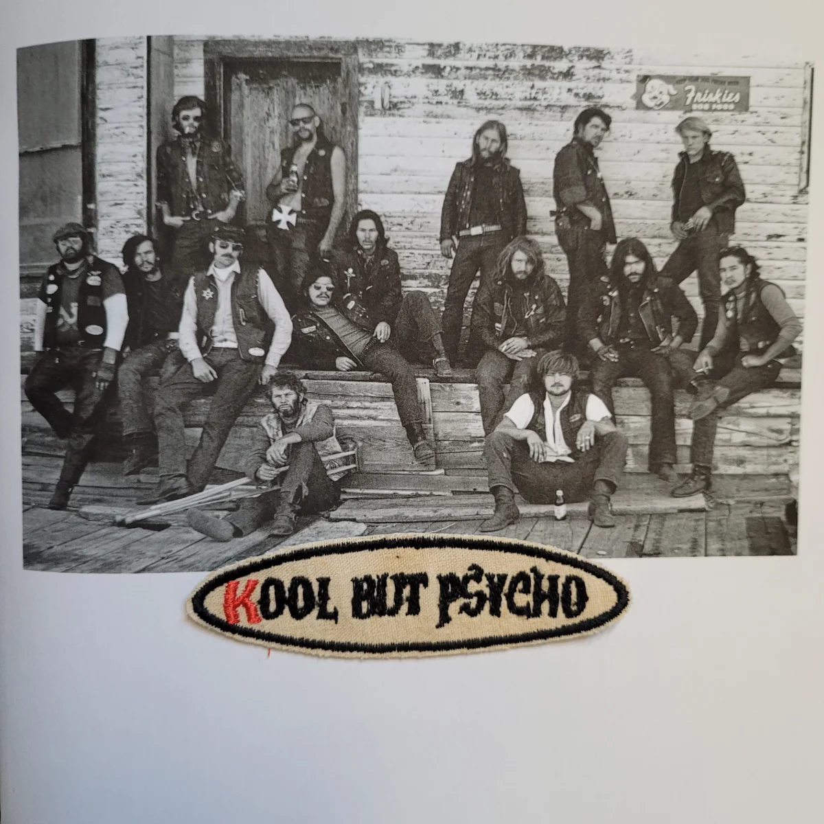 Écusson brodé « Kool but psycho » en édition limitée sur feutre et toile de coton vieilli. Dimensions : 10,2 cm x 2,5 cm.