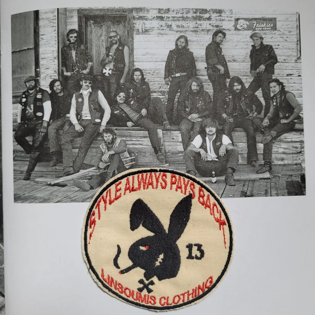 Écusson brodé « Le style paie toujours » en édition limitée sur toile de coton vieillie. Taille 10 cm.
