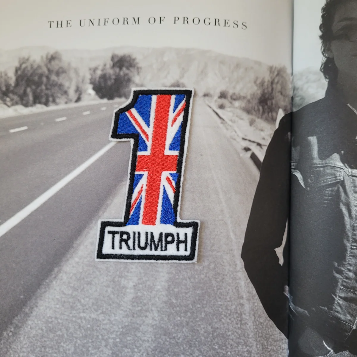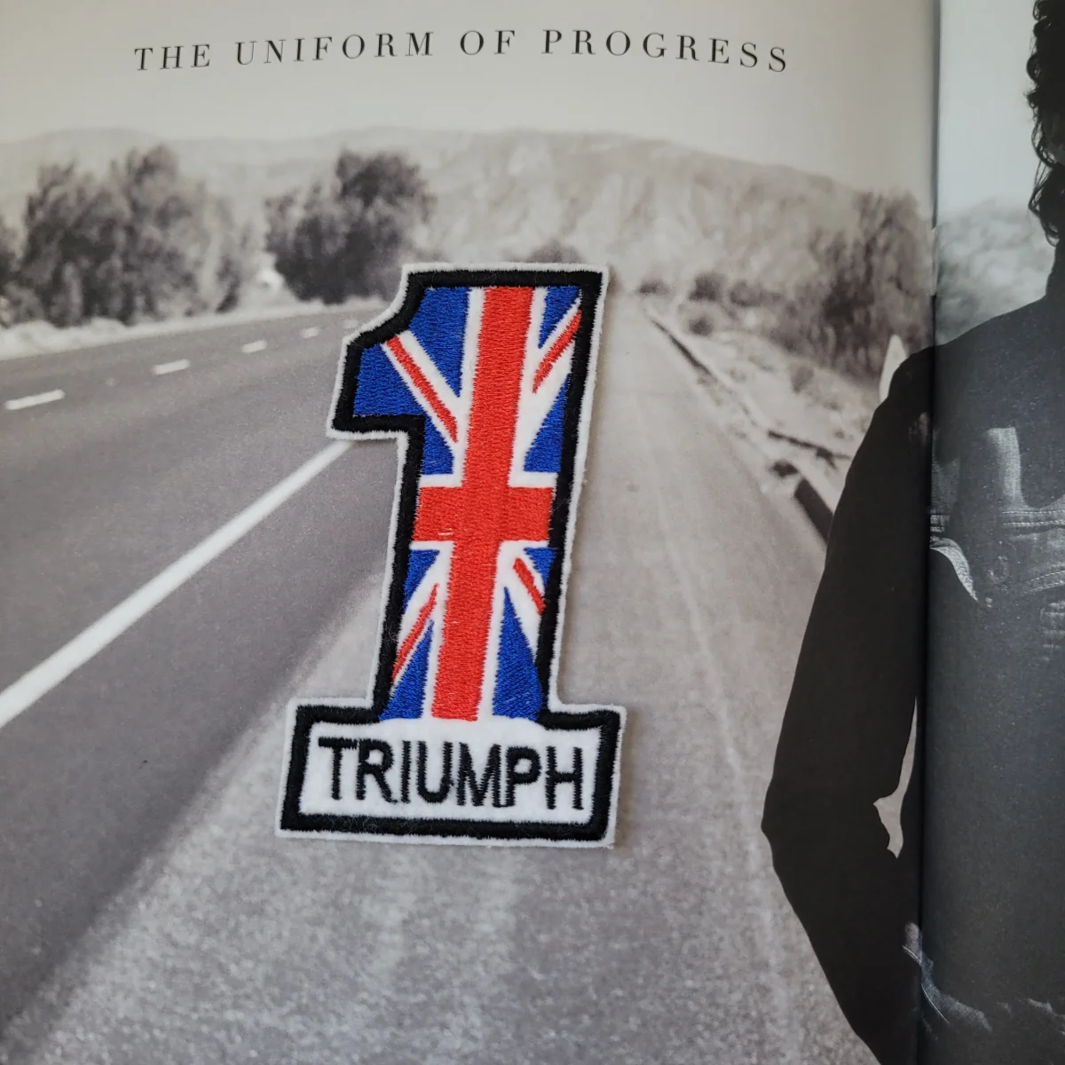 Patch brodé en série limitée « Number one Triumph » sur feutrine doublée de vieux tissus cotons.
