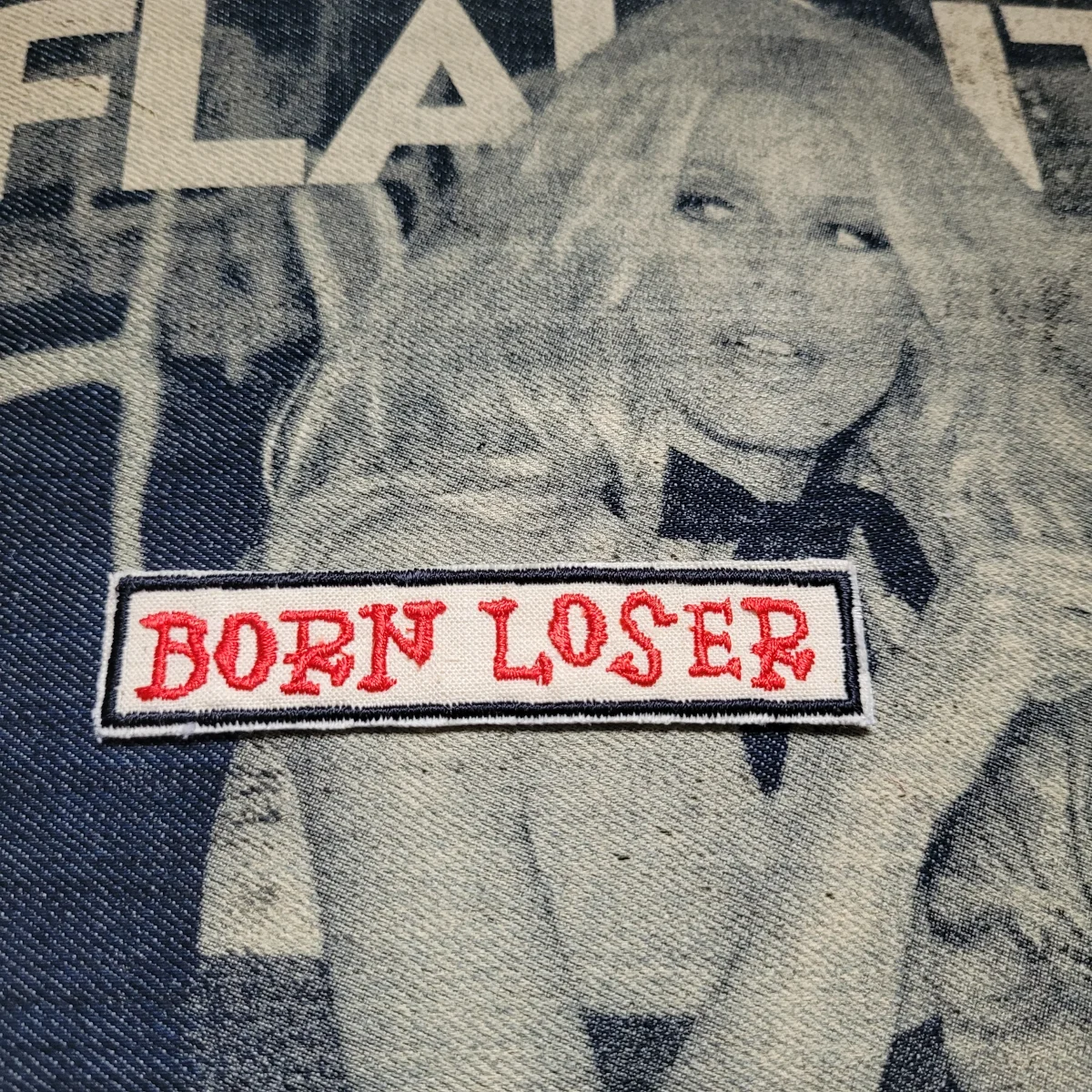 Patch brodé RARE « Born Loser » SUR VIEUX TISSU COTON