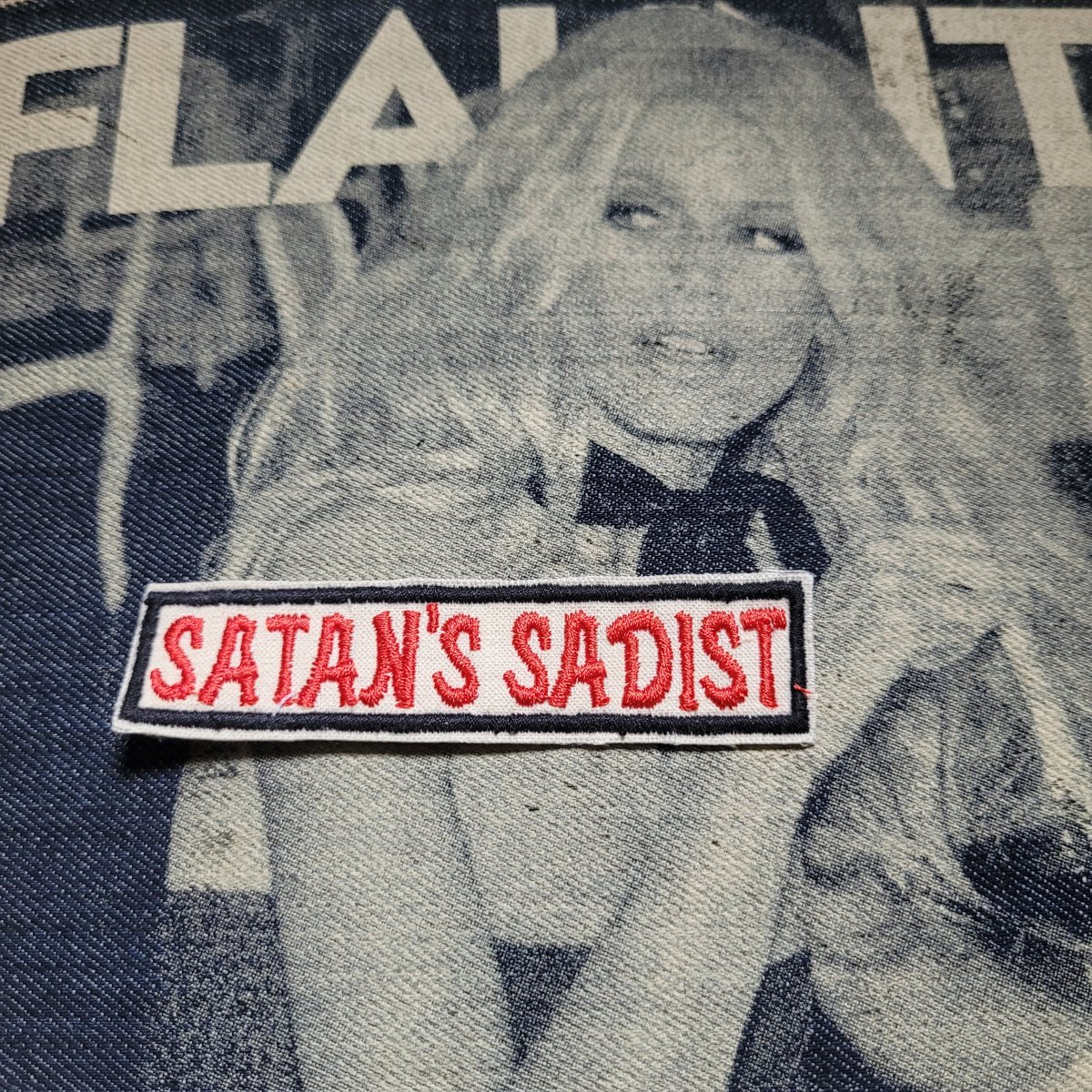 Patch brodé RARE « Satan’s Sadist » SUR VIEUX TISSU COTON