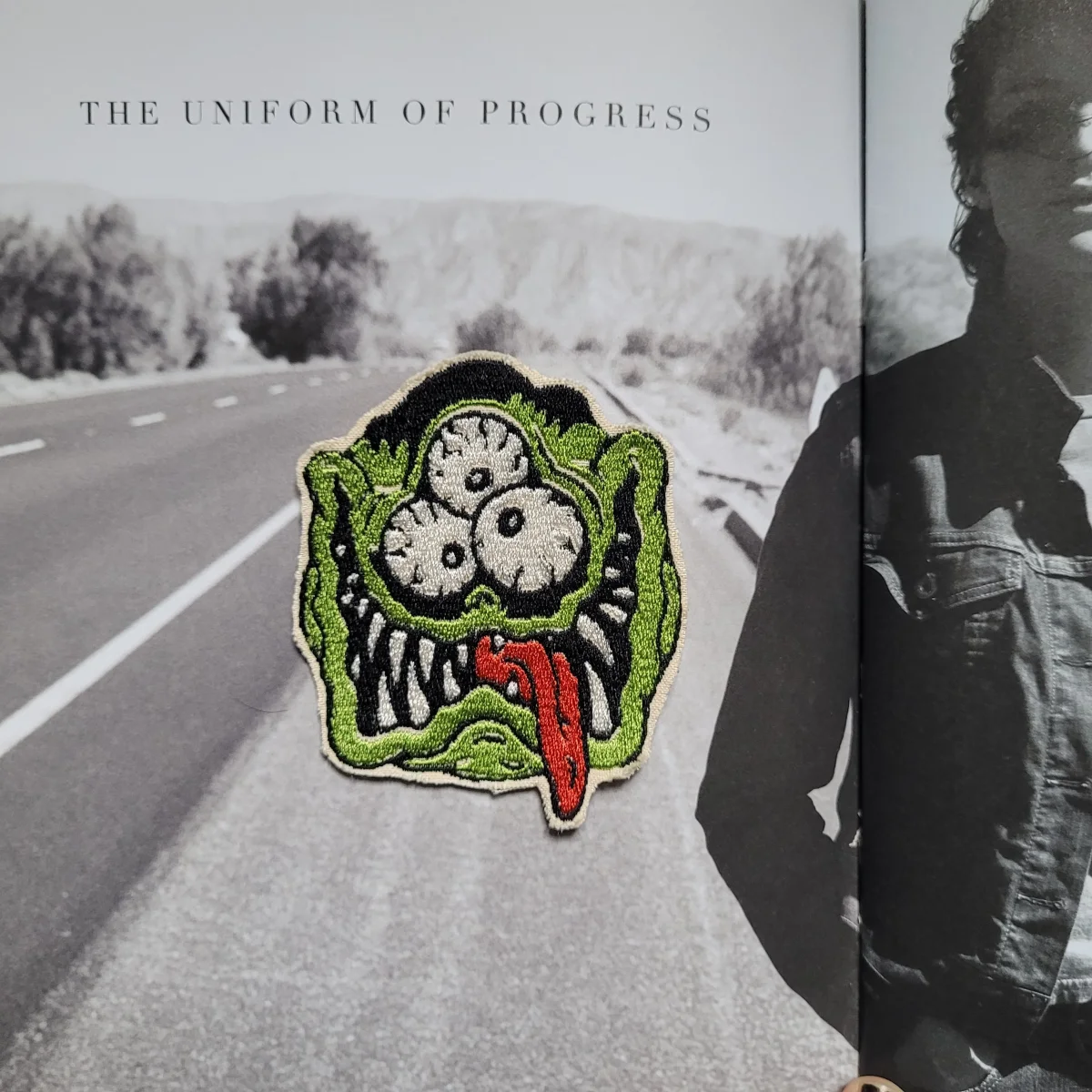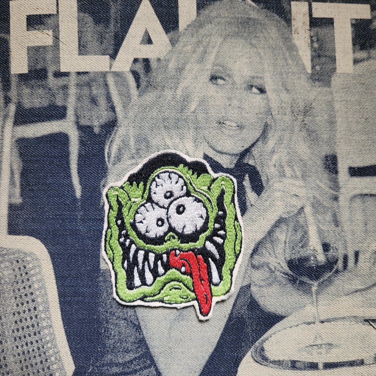 Patch Brodé  » The Monster Psychedelic » SUR VIEUX TISSU COTON