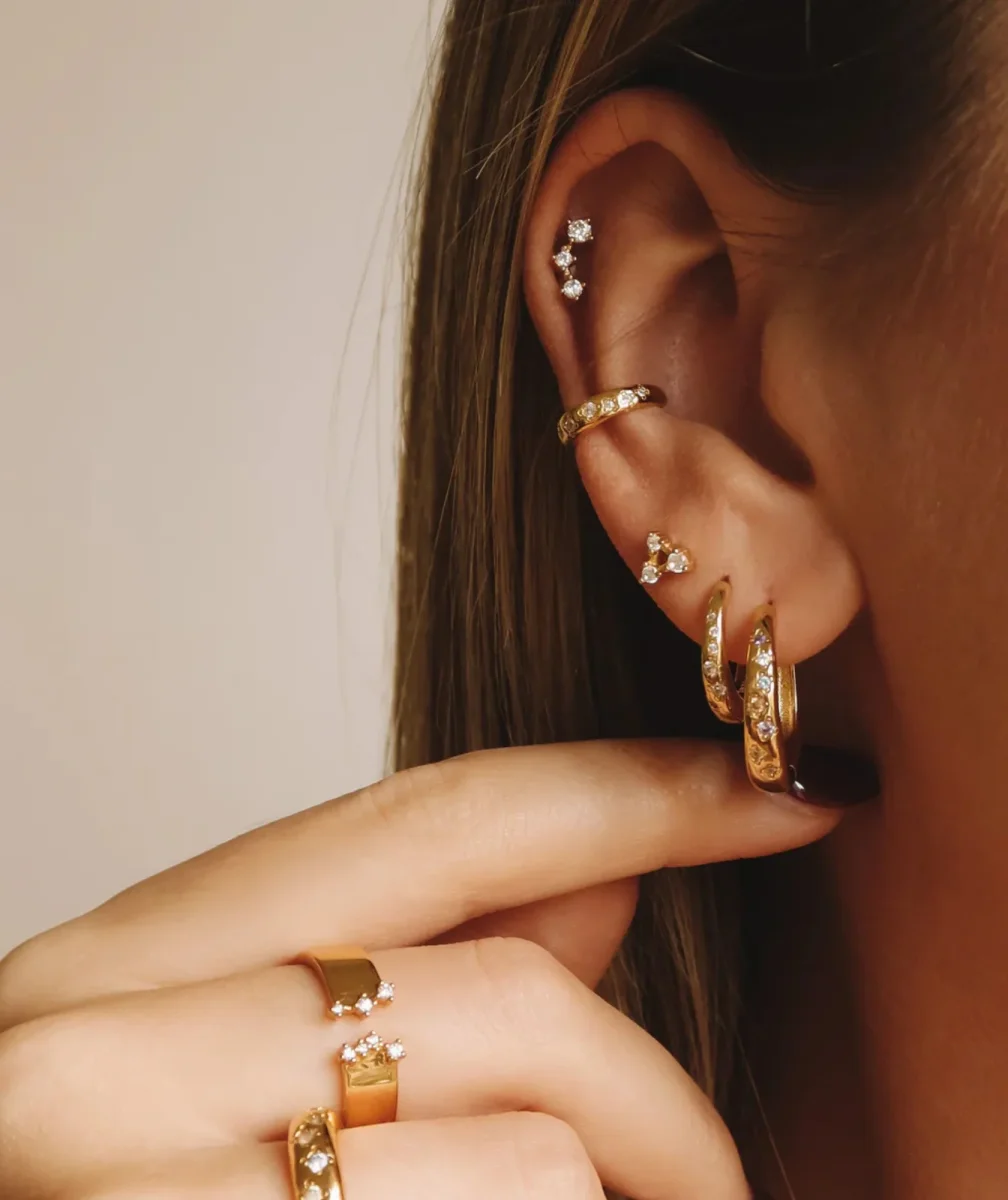 Brillez comme une étoile avec le piercing Orion de Nébuleuse Bijoux. Orné de cristaux sertis en dégradé, ce bijou apporte une lumière subtile à votre oreille. Son design sophistiqué en acier inoxydable doré en fait un incontournable pour les amoureuses du minimalisme chic. Matière : Acier inoxydable doré, résistant et hypoallergénique Cristaux blancs sertis en […]