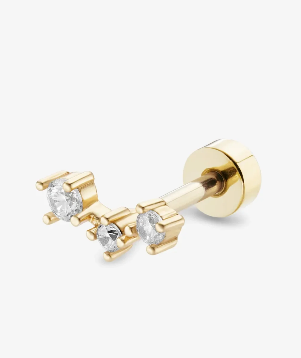 Brillez comme une étoile avec le piercing Orion de Nébuleuse Bijoux. Orné de cristaux sertis en dégradé, ce bijou apporte une lumière subtile à votre oreille. Son design sophistiqué en acier inoxydable doré en fait un incontournable pour les amoureuses du minimalisme chic.