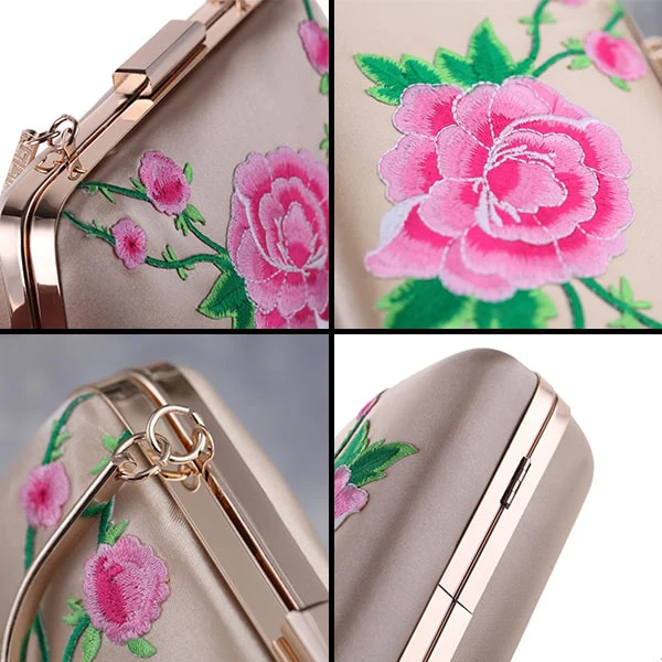 La pochette de soirée fleurie en version tissée qu’on adore. Ligne structurée avec bords arrondis, elle embellit la tenue et y apporte une touche chic très subtile. Selon vos gouts, elle se porte en bandoulière ou à la main. Le petit plus ? Ses détails floraux colorés et son armature rigide qui font de ce modèle le parfait accessoire de mode pour les fêtes et autres occasions spéciales.
