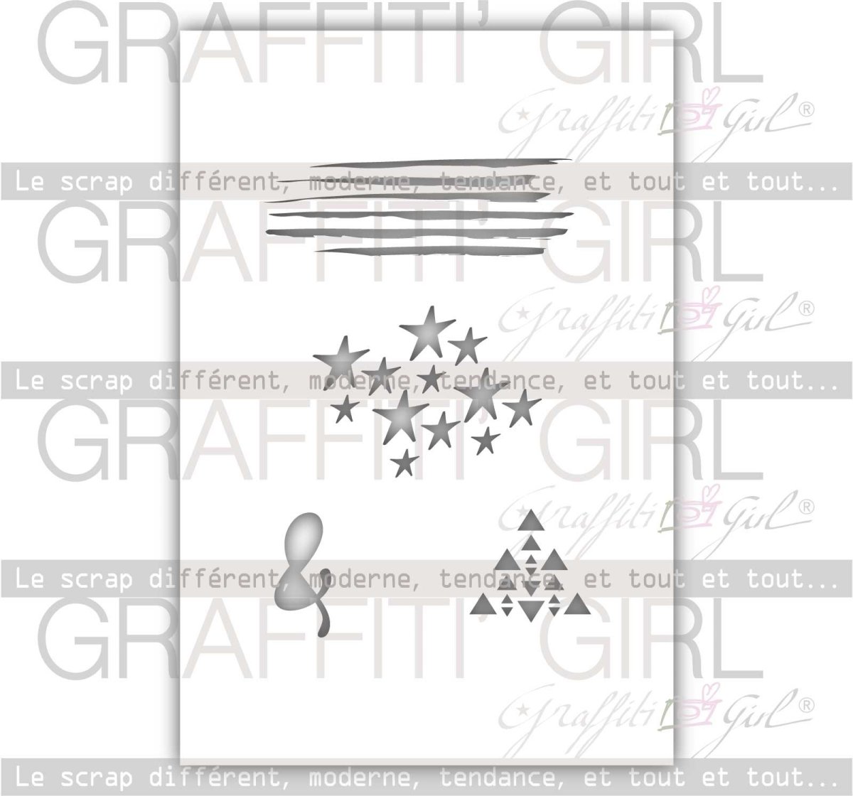 Pochoir en plastique scrapbooking étoiles, triangles, musique