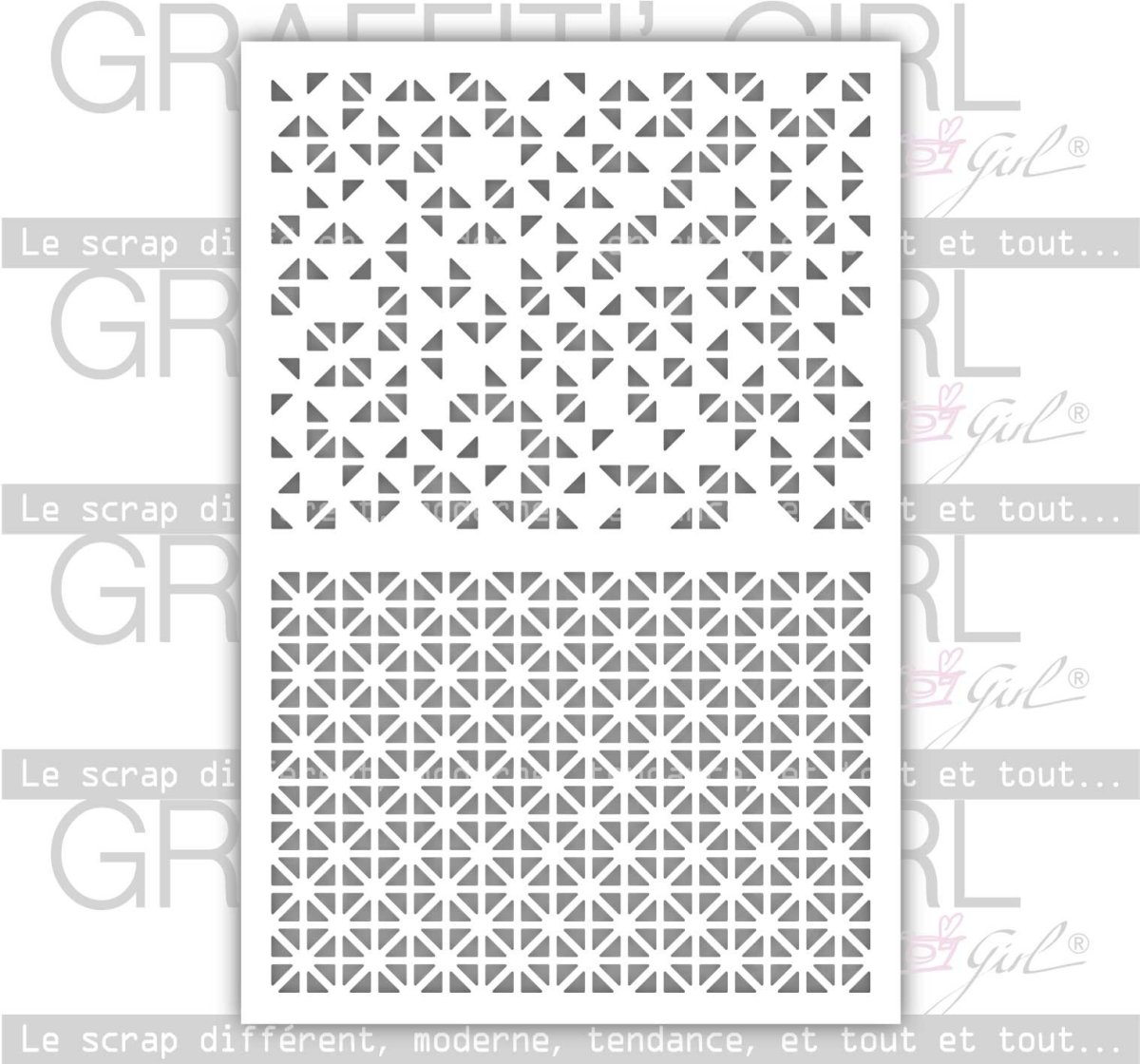 Un graphisme de petits triangles, avec deux motifs différents sur un seul pochoir.