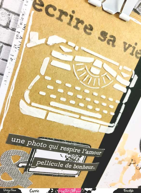 Le pochoir Typo de chez Graffiti Girl est issu de la collection Mise au point. Toujours dans le thème artistique, c’est l’écriture qui est mise en avant avec ce motif de machine à écrire, pour un côté art journal et vintage. Le pochoir se compose également de mots doux comme inspiration, créer, rêver. Des petits mots que vous pouvez glisser partout dans vos projets de scrap. Très apprécié dans l’univers du mixed-media et de l’art journal.