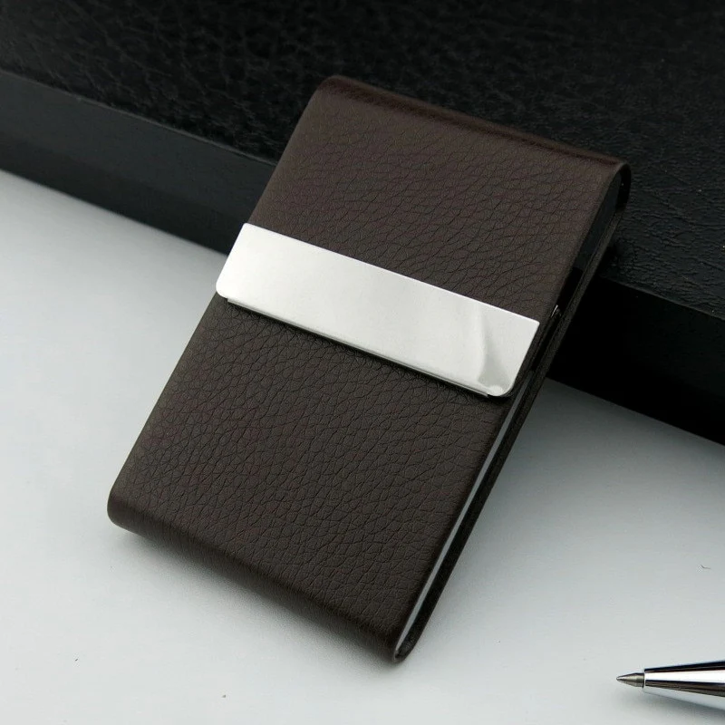 Cet étui de visite Business dégage un style élégant et minimaliste grâce à son cuir PU et les multiples choix de coloris possible. Vos cartes resteront en parfait état avec la couche de métal renforcé qui protège chaque bord du porte-cartes. Avec son format slim, vous pourrez le glisser facilement dans une poche où un sac à mains.