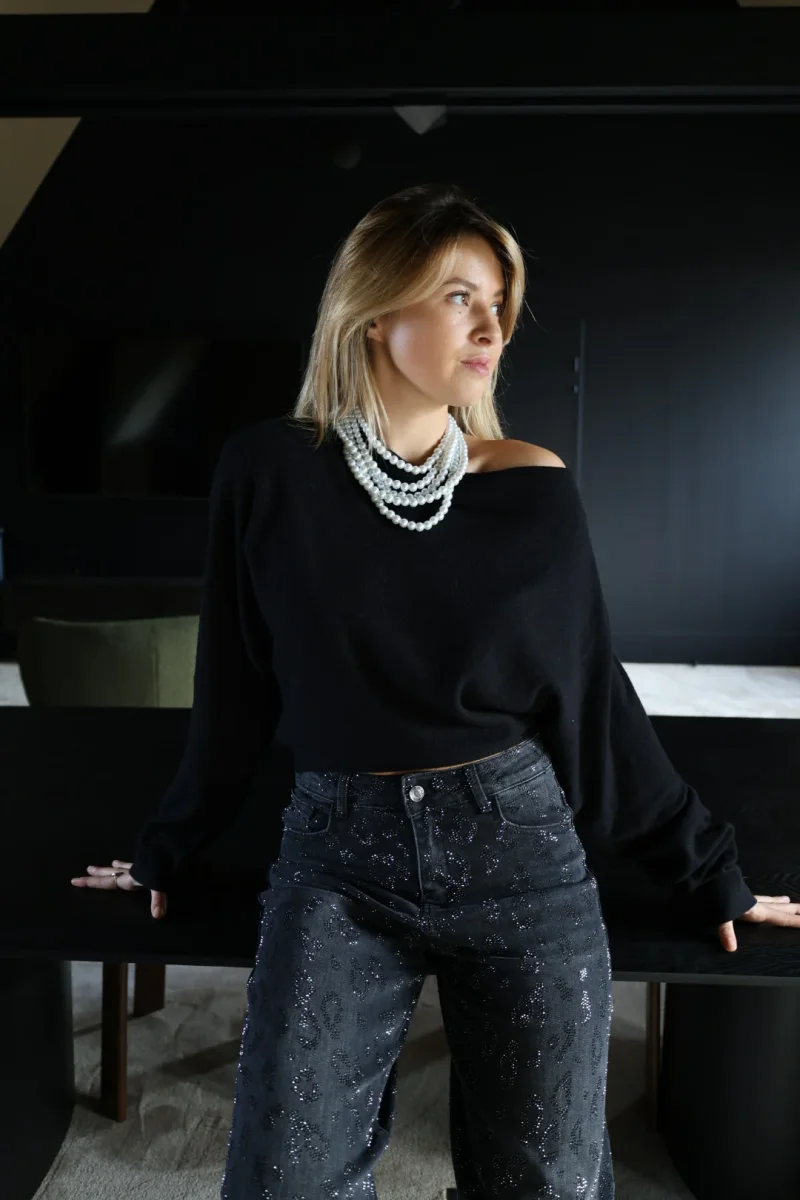 - Se porte avec une épaule dénudée ou col bénitier