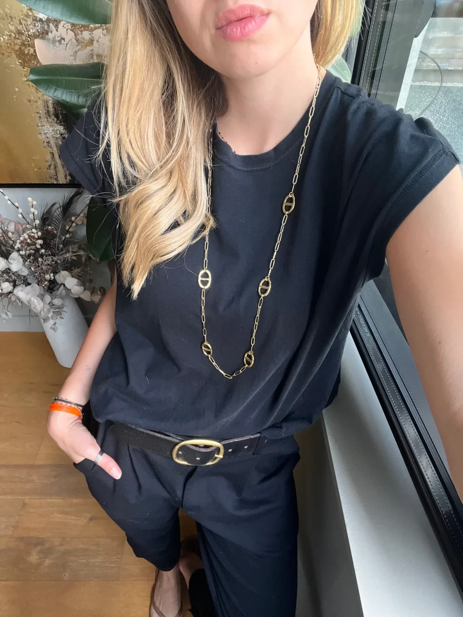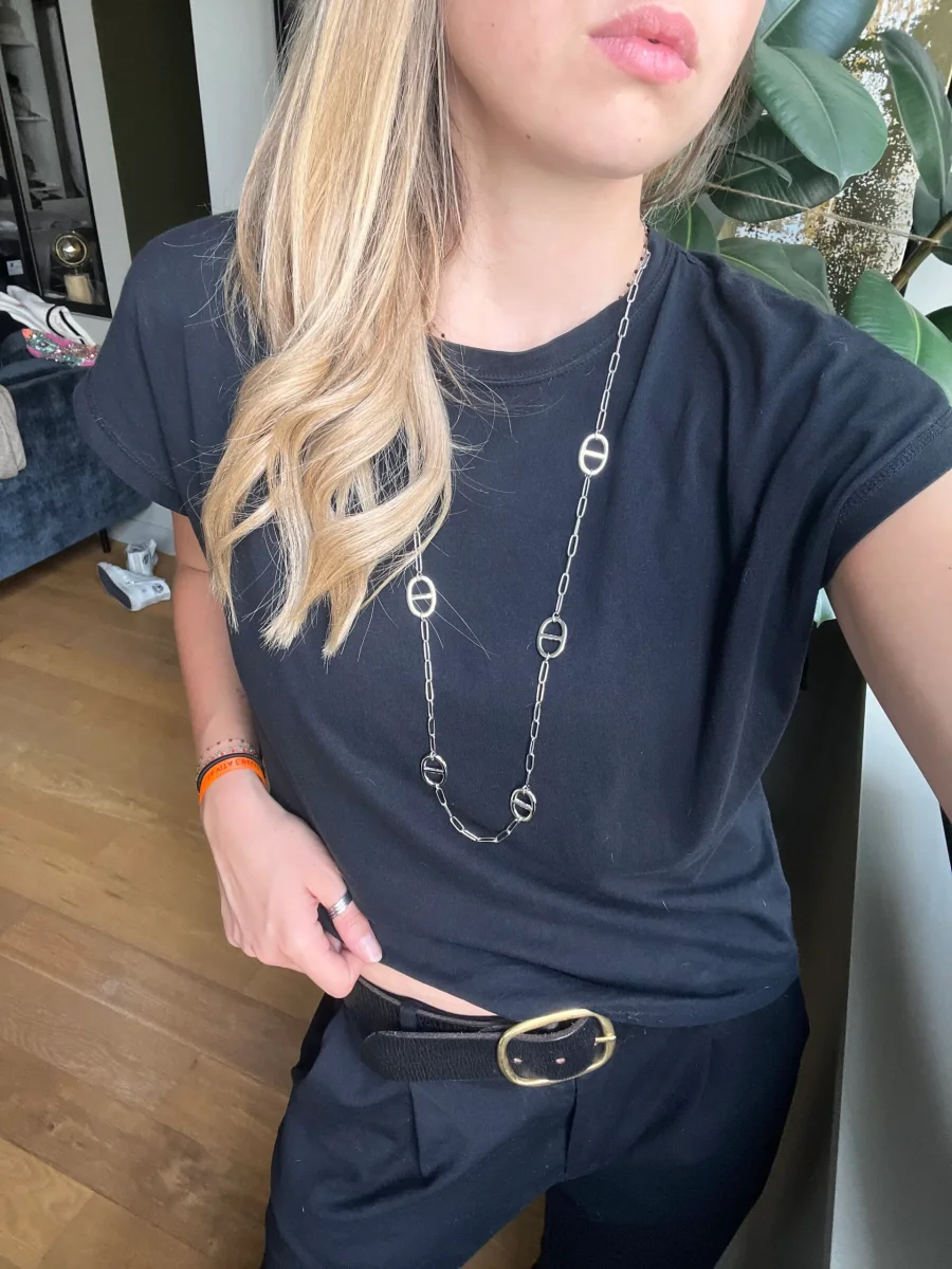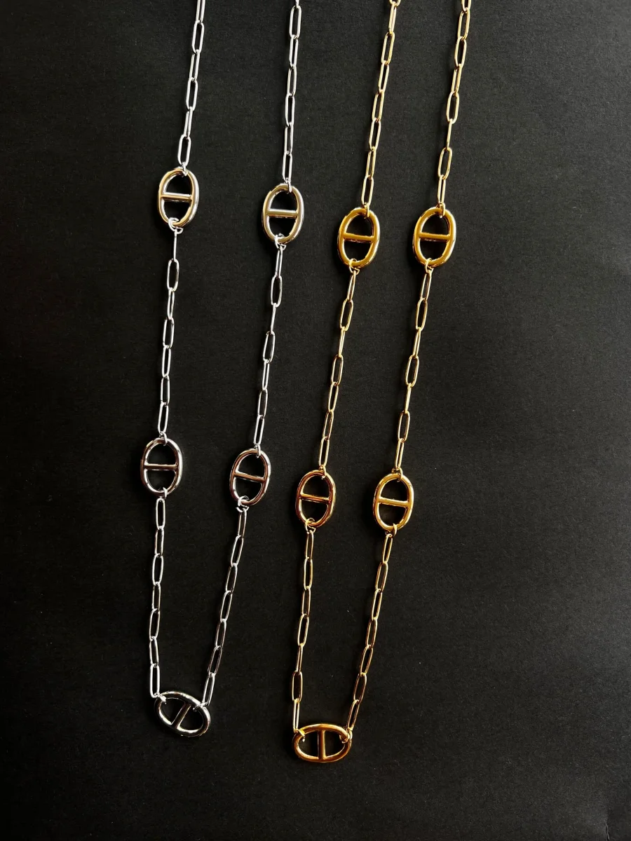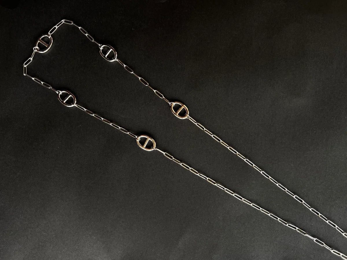 Acier inoxydable chaine de réglage de 4cm ( voir photo ) existe en doré et argenté existe aussi en version XS ( taille de la maille ) longueur : 44cm environ