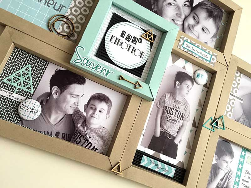 Voici une carte de scrap avec un sticker Géomavie :
