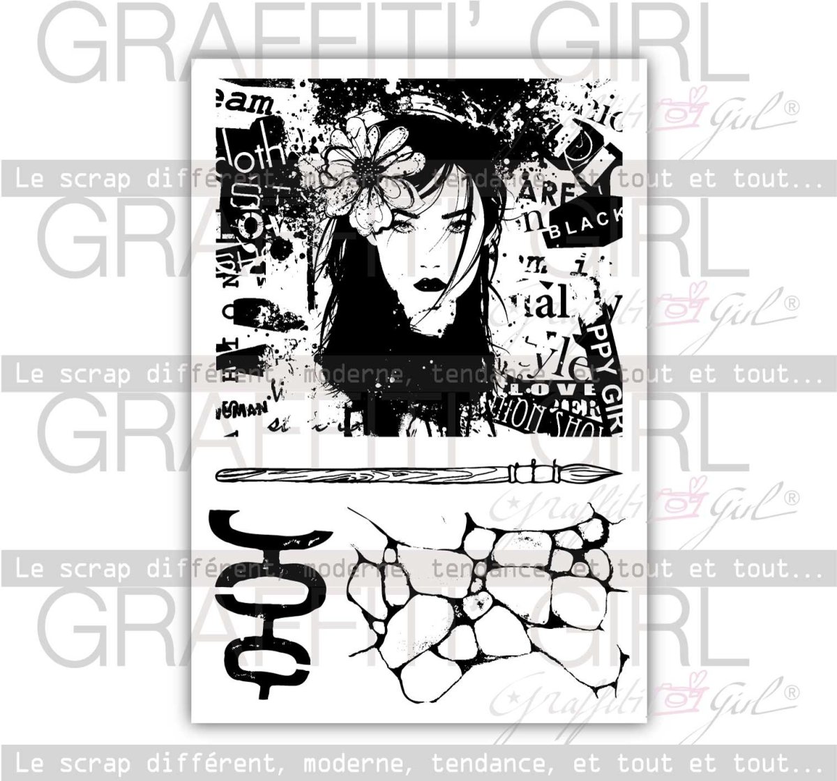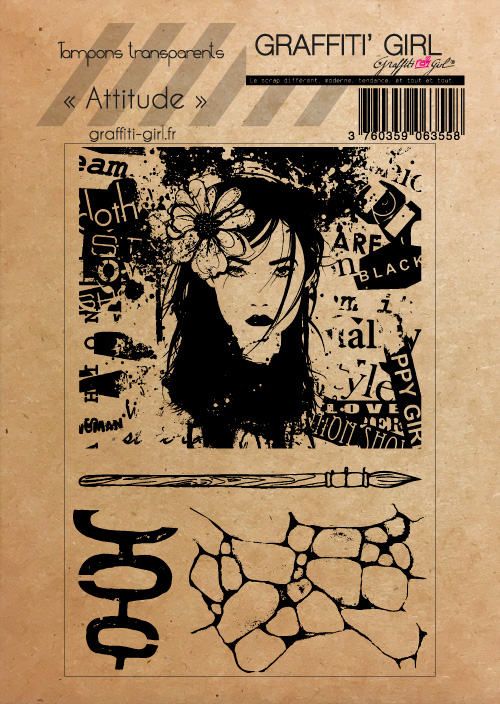 Nom: Attitude Produit: Tampons transparents Taille: A6 (9,6 cm x 14 cm) Marque: Graffiti Girl Le petit plus: Vendu dans une pochette papier kraft recyclé, A6. Utilisation: A positionner sur un bloc acrylique (non fourni), encrez et appliquez. Nettoyage lingettes bébé ou chiffon humide.
