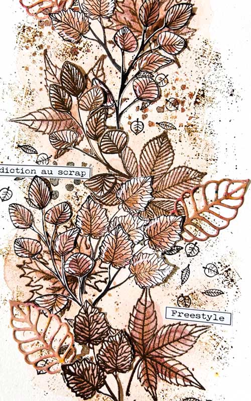 - Sélectionnez votre tampon « Branchages » et appliquez l’encre de votre choix.