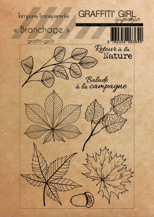 Nom: Branchage Produit: Tampons transparents Taille: A6 (9,6 cm x 14 cm) Marque: Graffiti Girl Collection: Cohérence Le petit plus: Vendu dans une pochette papier kraft recyclé, A6. Utilisation: A positionner sur un bloc acrylique (non fourni), encrez et appliquez. Nettoyage lingettes bébé ou chiffon humide.