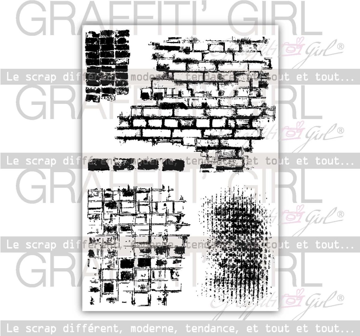 Set de tampons clears grunge, briques, murs, pour scrapbooking.