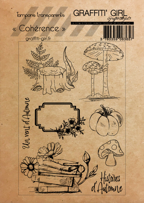 Nom: Cohérence Produit: Tampons transparents Taille: A6 (9,6 cm x 14 cm) Marque: Graffiti Girl Collection: Cohérence Le petit plus: Vendu dans une pochette papier kraft recyclé, A6. Utilisation: A positionner sur un bloc acrylique (non fourni), encrez et appliquez. Nettoyage lingettes bébé ou chiffon humide.