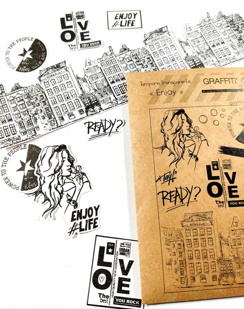 Tampons parfaits pour du art journal, ou pour réaliser des projets sur le street art, ou les voyages en grandes villes.