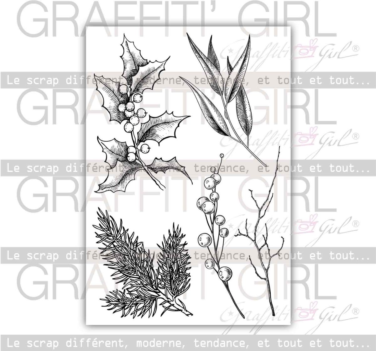 Planche de tampons transparents «Feuillages de Noël» – Graffiti Girl