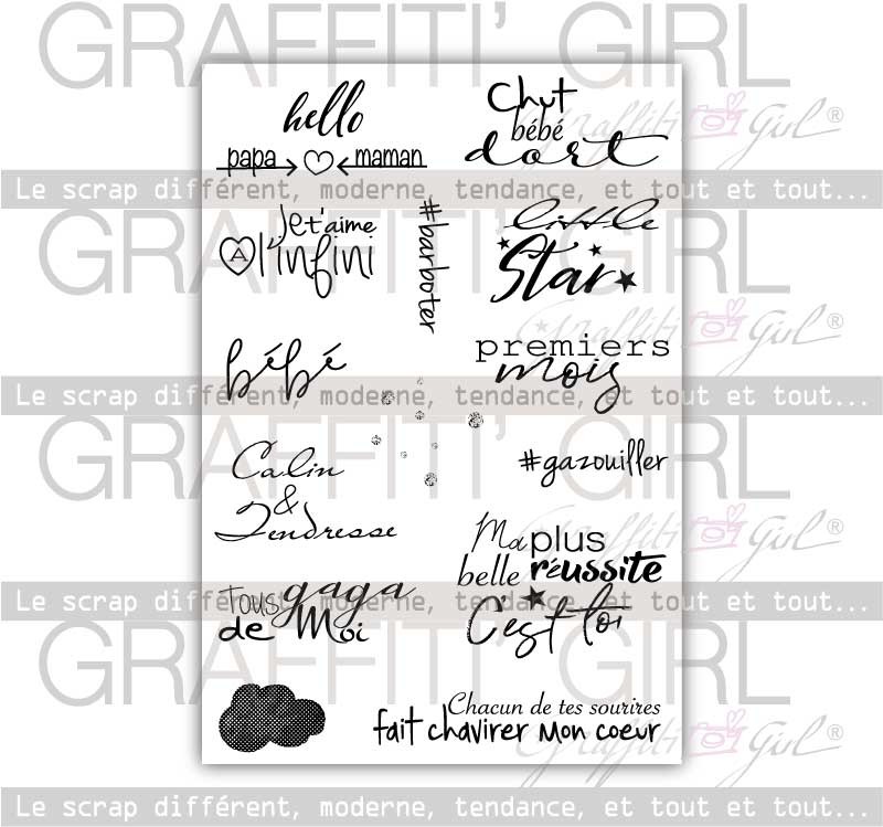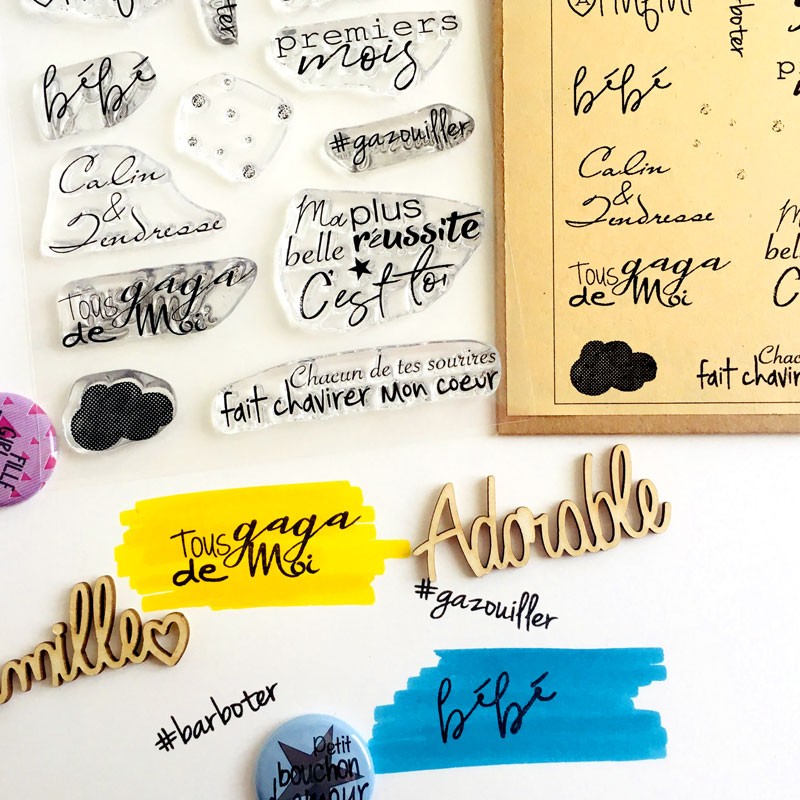Pour vos cartes de naissance, que vous confectionnerez vous-mêmes, ces tampons seront parfaits, mais également pour vos projets d’album de scrapbooking, que vous confectionnerez en attendant bébé le temps de votre grossesse par exemple. Ces tampons offriront un joli journaling pour les photos de vos bébés durant sa première année. Rien est trop beau pour bébé.