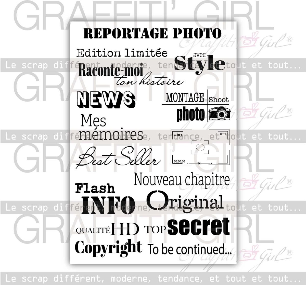 Tampons A6 Textes français thème photo – Graffiti Girl.