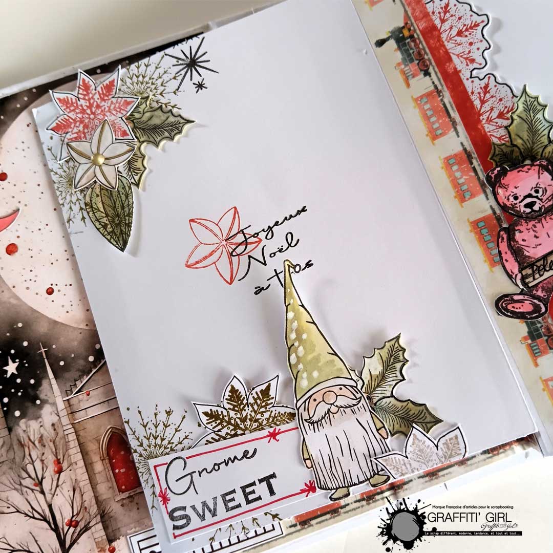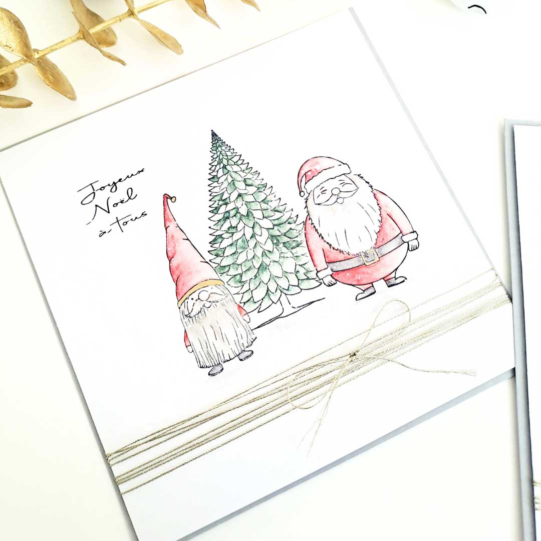 - Des illustrations originales de gnomes, sapin, flocon de neige, et un message « Joyeux Noël à tous » pour un esprit authentique et festif.