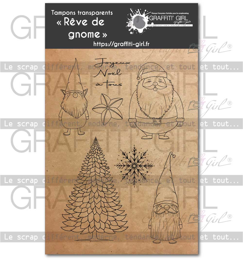 La planche de tampons « Rêve de Gnome » fait partie intégrante de la collection « Souffle d’hiver » de Graffiti Girl. Avec des motifs hivernaux et festifs, ces tampons permettent d’apporter une touche personnelle à vos projets de scrapbooking, cartes et autres créations. Cette planche en format A6 inclut :