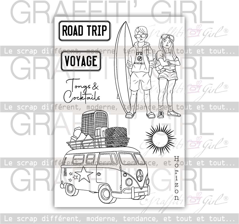 Planche de Tampons « Road Trip » – Liberté et Aventure – Graffiti Girl