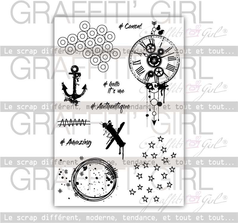 cette planche de tampons pour le scrapbooking, a été réalisée par les membres de notre Design team durant l’année 2017. Vous retrouvez donc des motifs très différent, les uns des autres, puisque chaque dessinatrice a mit une touche d’elle même