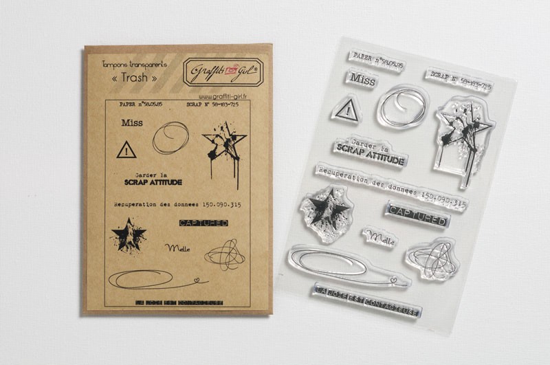 Tampons clear scrapbooking effet trash avec motifs
