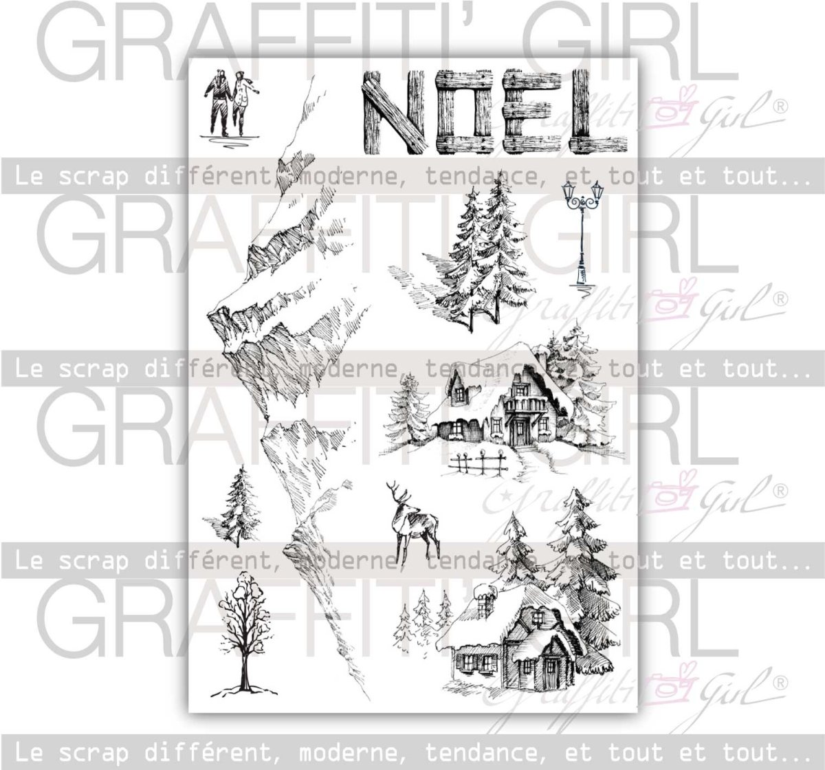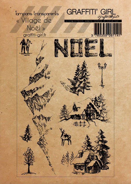 Nom: Village de Noël Produit: Tampons transparents Taille: A6 (9,6 cm x 14 cm) Marque: Graffiti Girl Le petit plus: Vendu dans une pochette papier kraft recyclé, A6. Utilisation: A positionner sur un bloc acrylique (non fourni), encrez et appliquez. Nettoyage lingettes bébé ou chiffon humide.