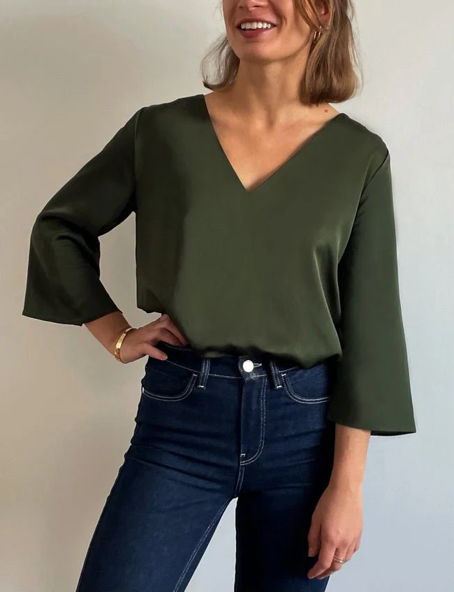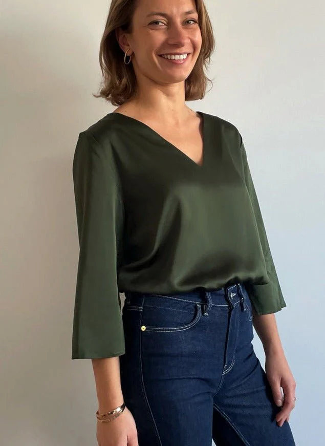 Notre Haut Bree Kaki vous permettra d’arborer un tombé élégant, simple et intemporel. Son coloris vous permettra d’être PILE dans la tendance de cet hiver et de vous renouveler à chaque instant en changeant de côté de col. (Créé pour être porté aussi bien en col rond qu’en col V).