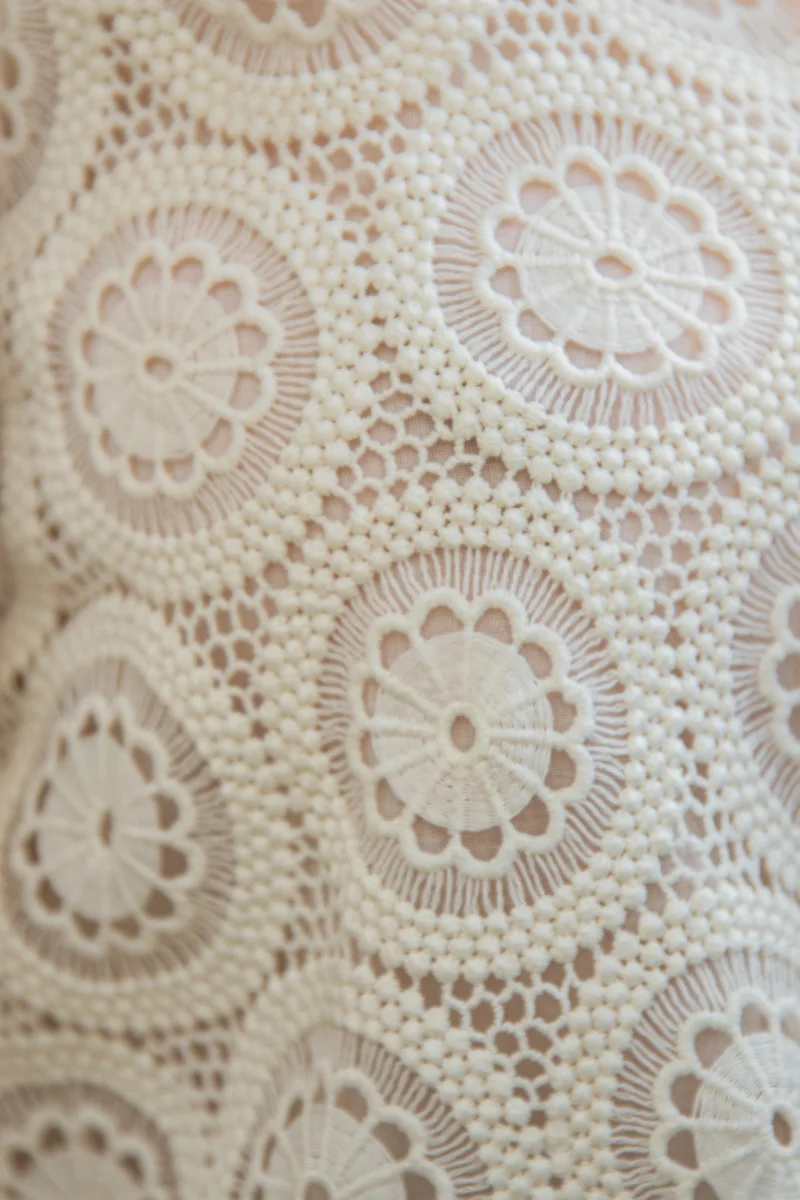 Apportez une touche de romantisme et d’élégance à votre dressing avec le top écru TALIA de La Petite Étoile. Ce haut raffiné se distingue par son col V féminin et ses jolis nœuds sur le devant, qui soulignent délicatement la silhouette. Confectionné en broderie anglaise circulaire, il dévoile subtilement la peau grâce à ses manches courtes transparentes, tout en restant confortable avec sa doublure sur le plastron pour éviter la transparence. Léger et aérien, ce top 100% polyester est idéal pour un look bohème chic.